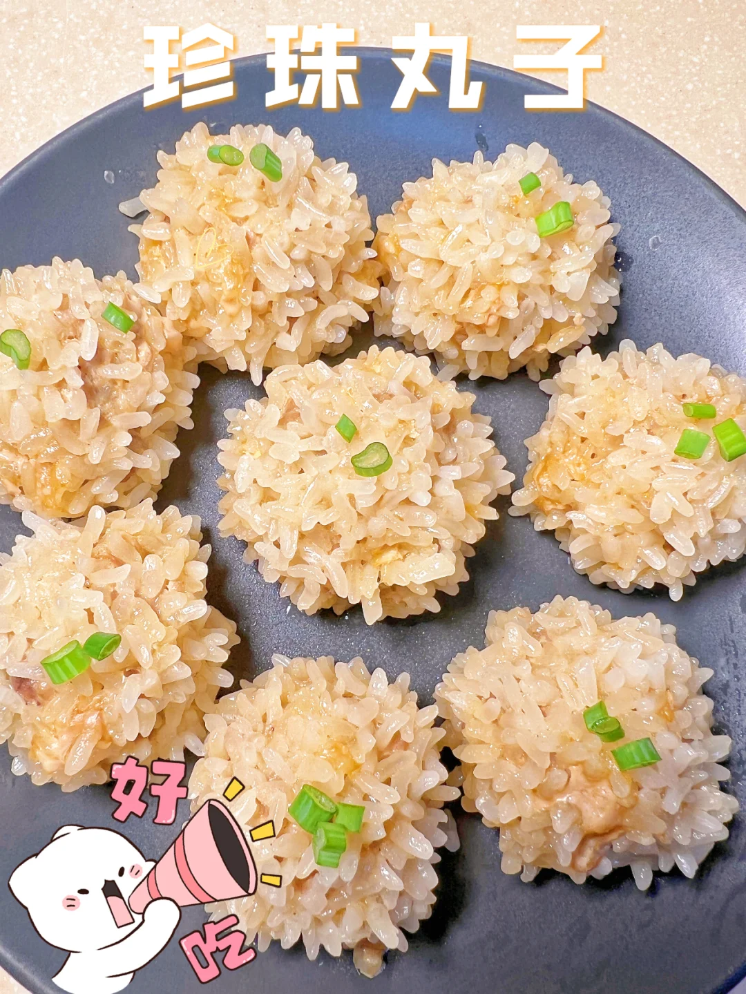 家宴必备~晶莹剔透、软糯鲜香的珍珠丸子,颜值和口味兼具[赞R],寓意团团圆圆。 [派对R]珍珠丸子的家常做法: 1.糯米提前3个小时泡好。 2.准备肉末。 3.加入:料酒、生抽、蚝油、十三香、盐、鸡蛋搅拌均匀,再加一点生粉水继续搅拌均匀。 4.把肉馅挤成丸子。 5.裹上糯米。 6.上锅蒸20分钟就OK啦[得意R] [色色R]刚出锅的珍珠丸子,Q弹的肉丸外层,裹满了软糯喷香的糯米粒,好吃到停不下来![赞R][赞R][赞R]