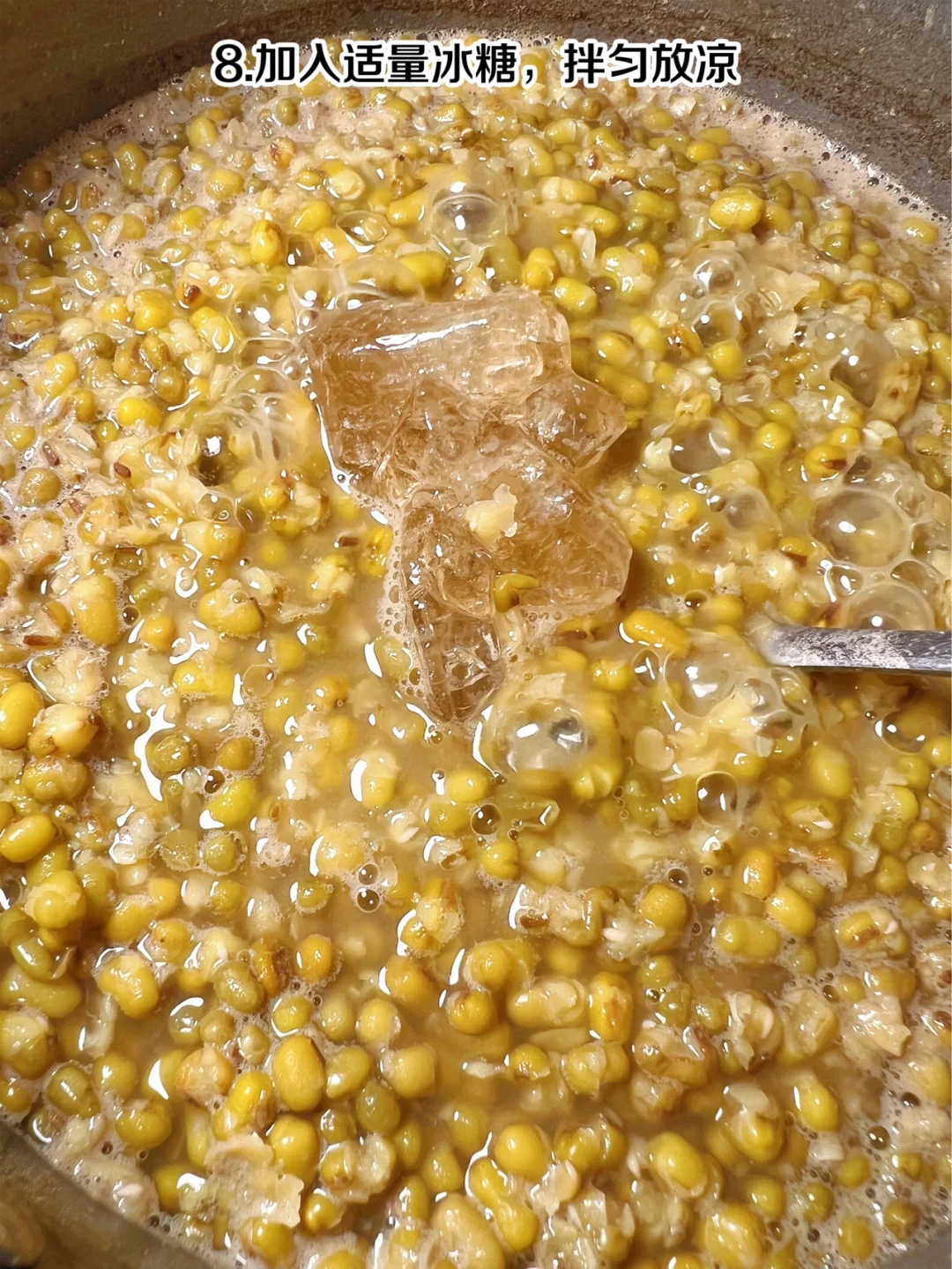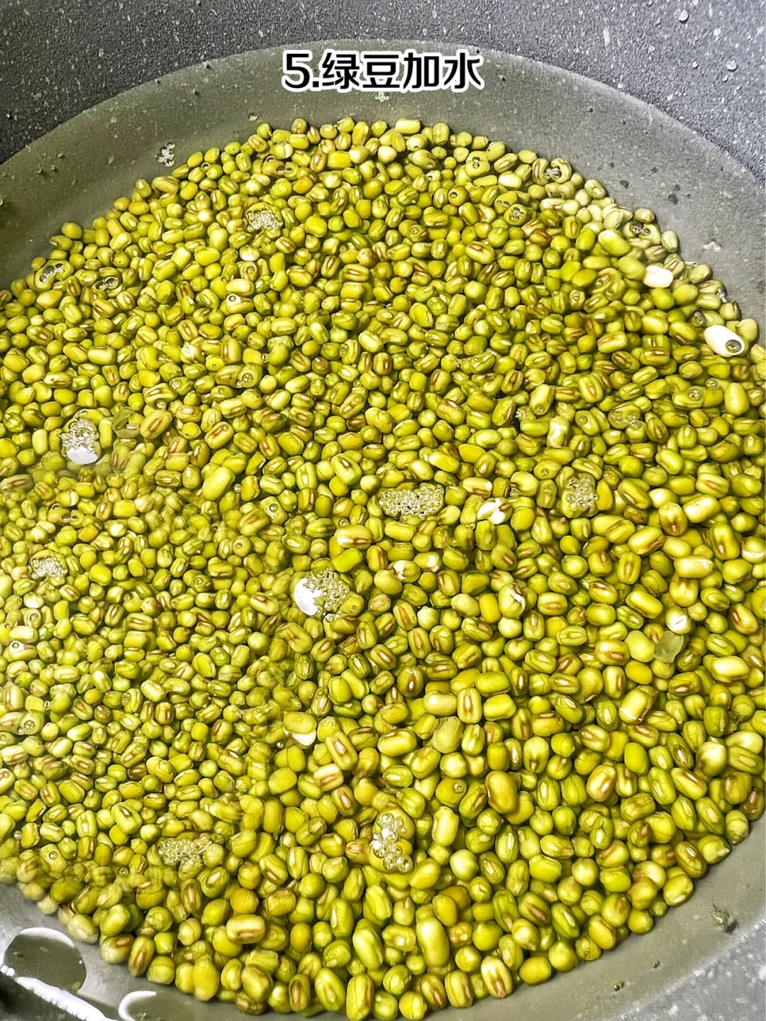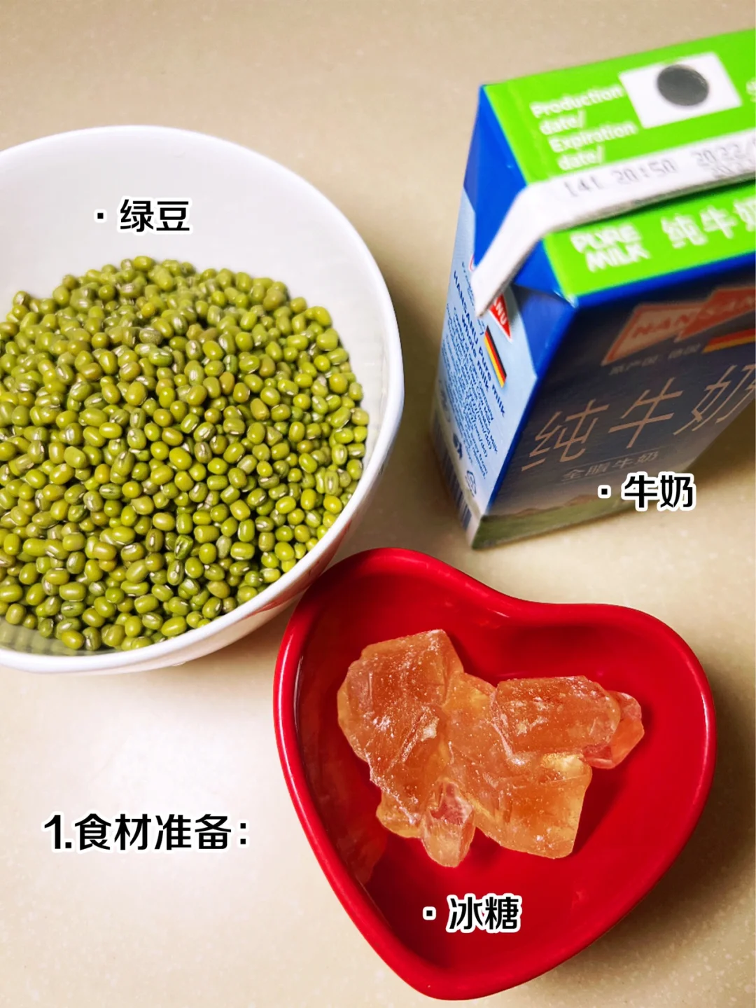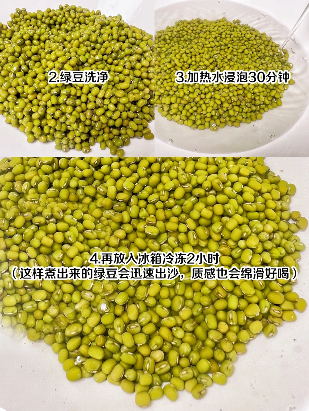 夏天就要喝冰饮 炎炎夏日一定要来一杯冰冰凉凉,清爽香甜的绿豆冰沙 1、食材准备:绿豆、牛奶、冰糖。 2、绿豆洗净。 3、加热水浸泡30分钟。 4、再放入冰箱冷冻2小时(这样煮出来的绿豆会迅速出沙,质感也会绵滑好喝)。 5、绿豆加水。 6、大火烧开5分钟后挤入少量柠檬汁(这样能使绿豆汤的颜色更加绿)。 7、小火再熬30分钟开花出沙。 8、加入适量冰糖,拌匀放凉。 9、一半绿豆+牛奶+冰块,放入破壁机打成绿豆沙 10、打好的绿豆沙和另一半绿豆混合在这个nice的小瓶里,very good!