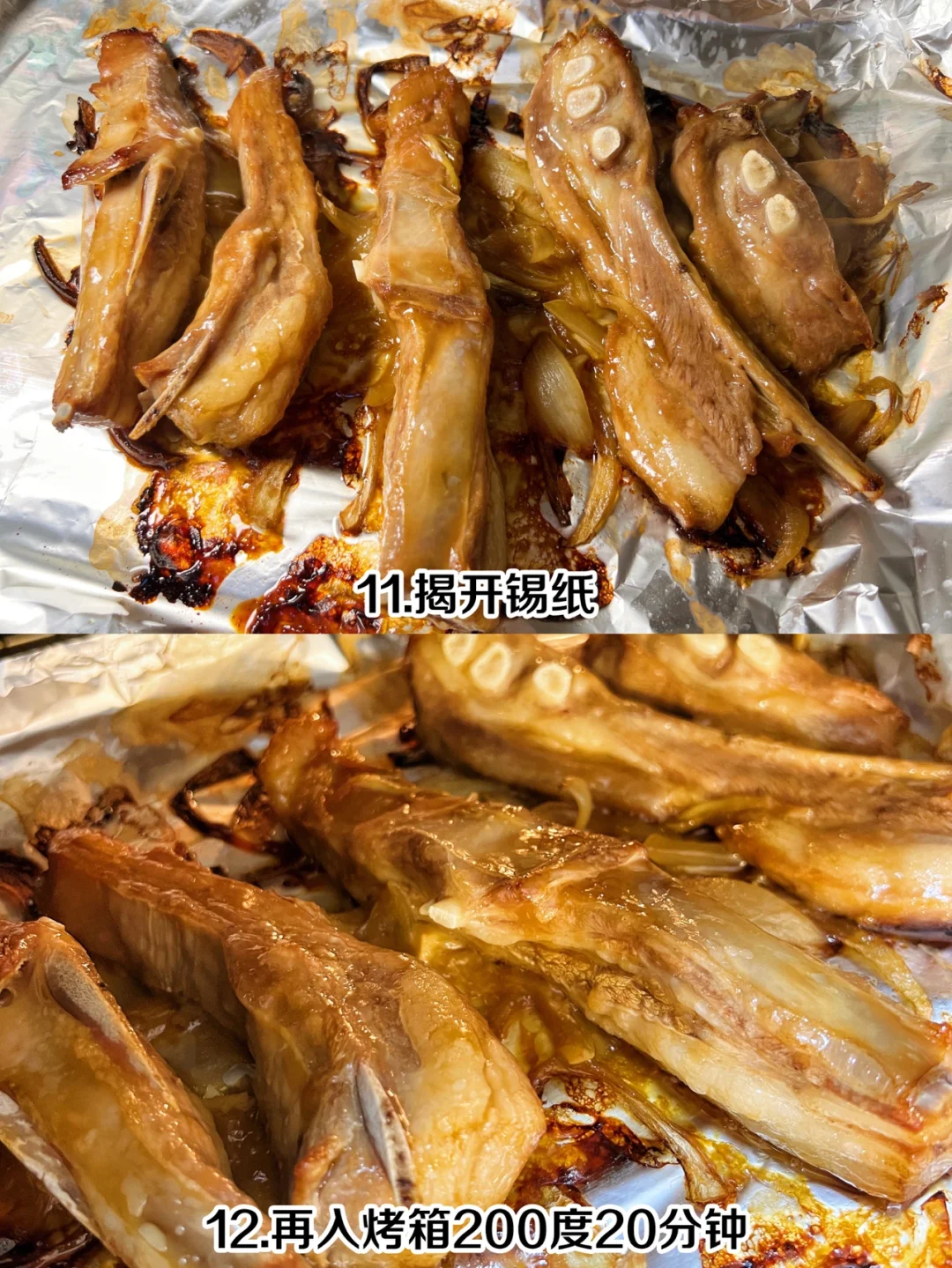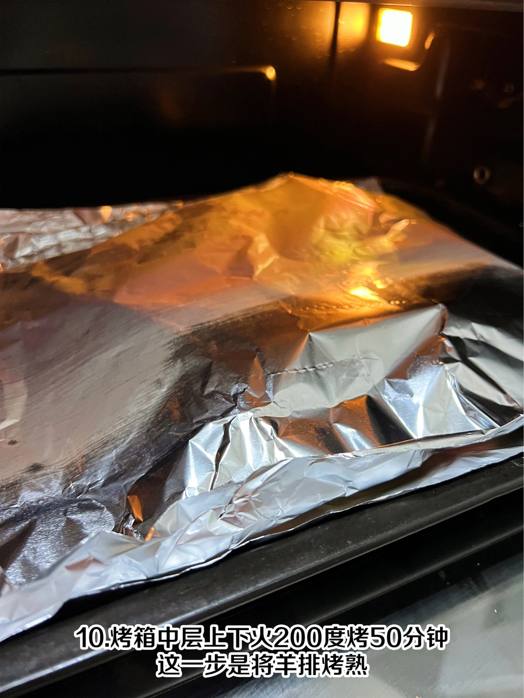 5、烤箱中层上下管200度烤50分钟,这一步是将羊排烤熟