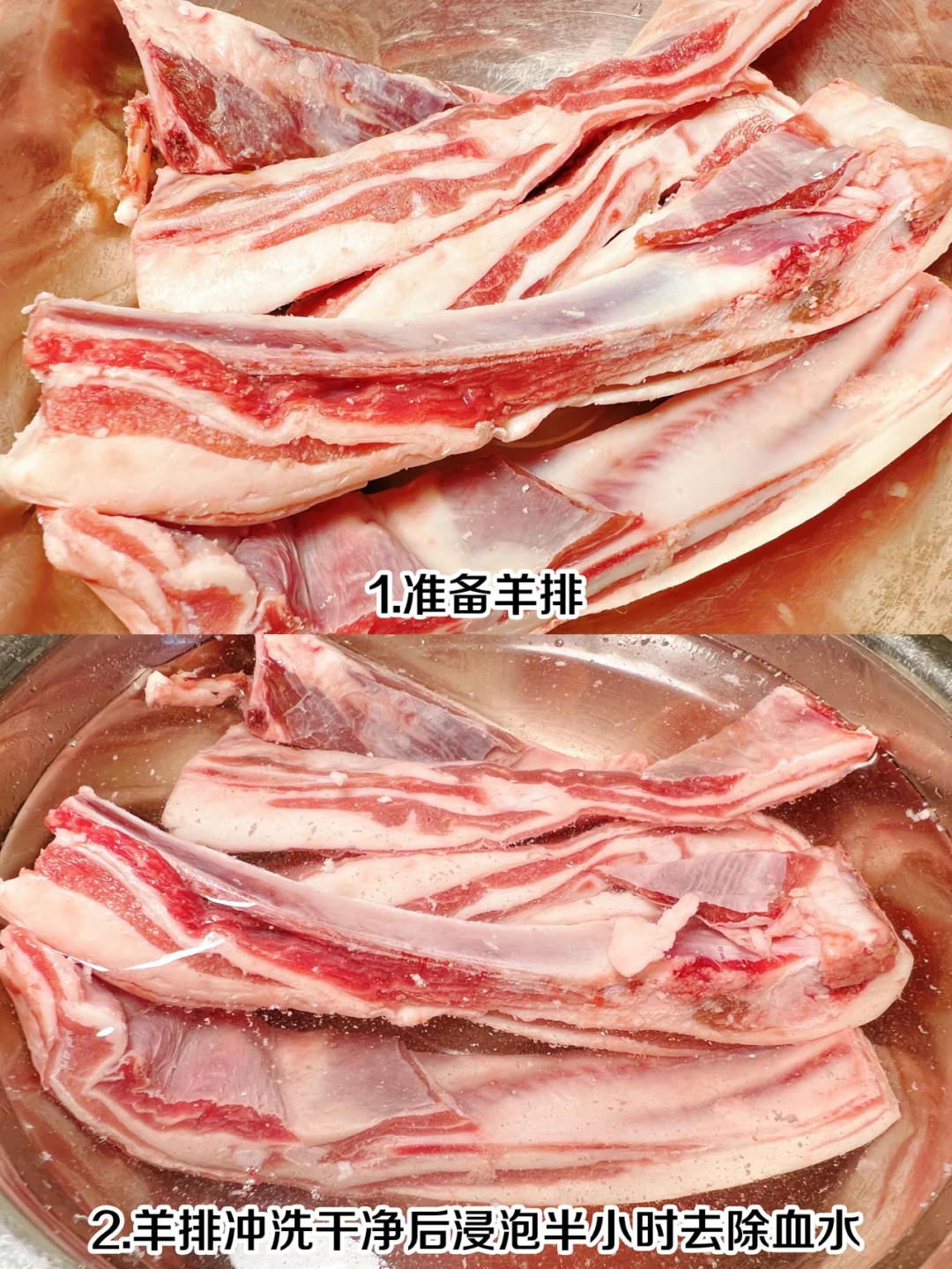 1、准备羊排,羊排冲洗干净后浸泡半小时去除血水