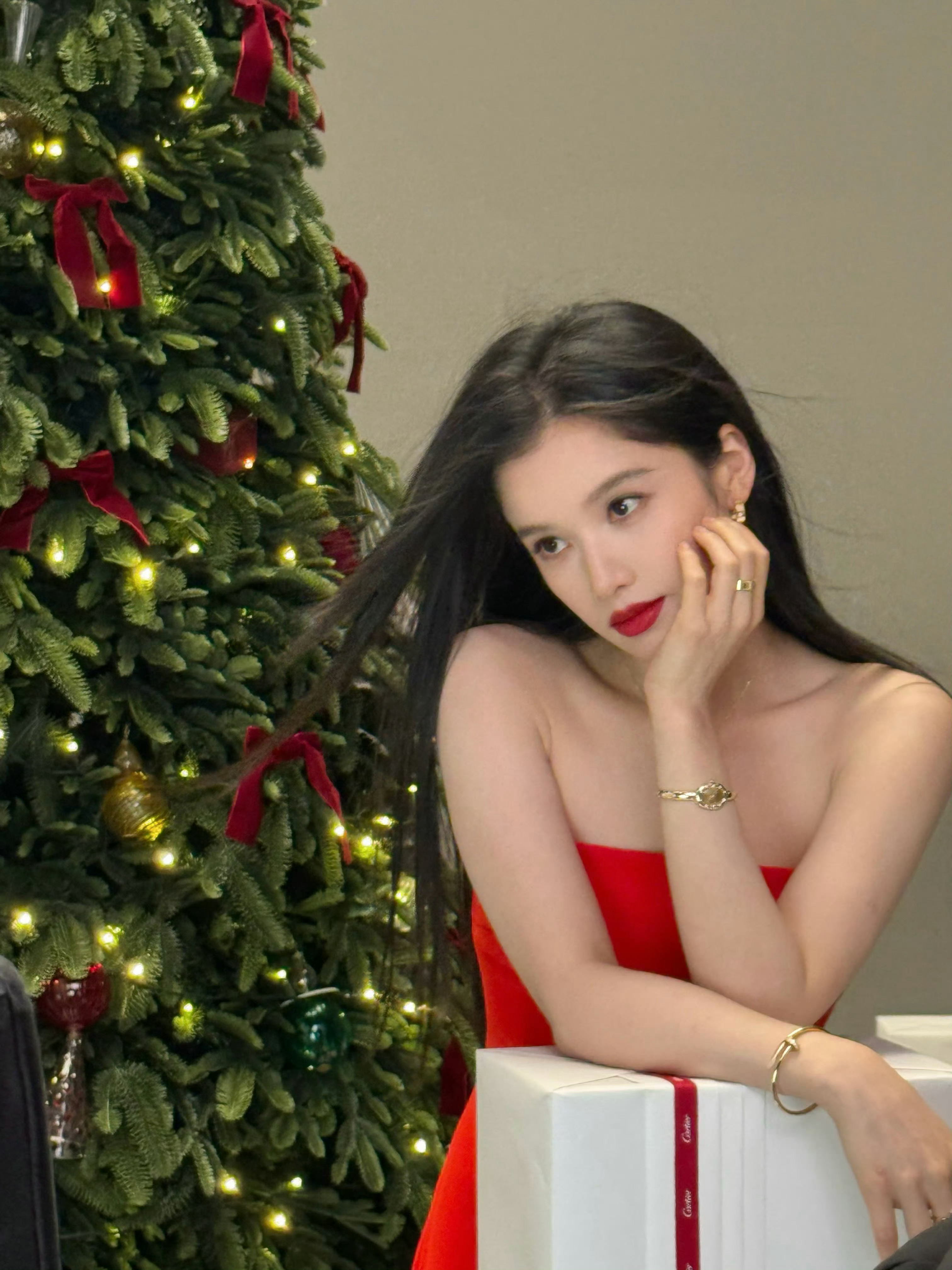 张婧仪今日更新两张live图,搭配卡地亚珠宝明艳的五官就要大红色和高珠💍