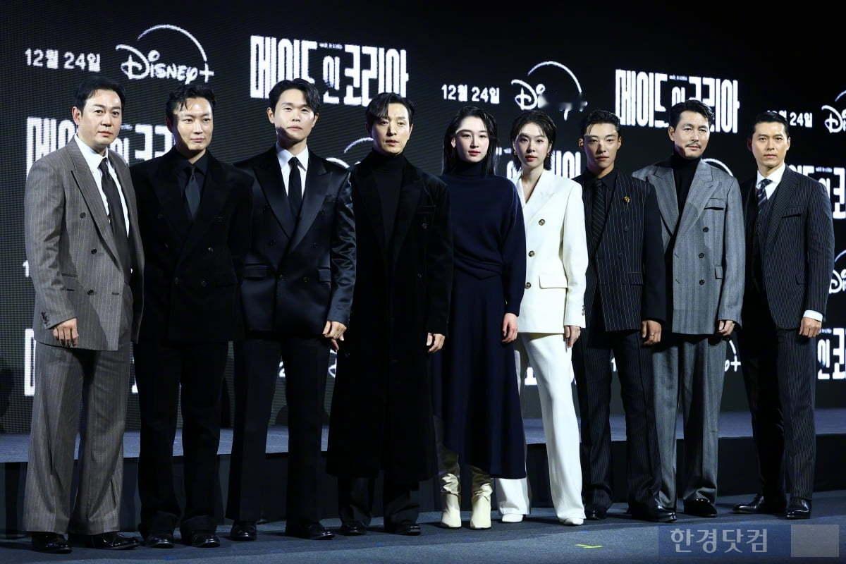 玄彬郑雨盛禹棹奂徐恩秀元志安郑星一 等出席主演Disney+新剧韩国制造 制作发布会。该剧讲述在动荡的20世纪70年代,对财富和权力抱有野心的白基泰和为了阻止他而放弃一切的检察官张建英面对贯穿时代的巨大事件而展开的故事。由《局内人》《南山的部长们》《麻药王》禹民镐导演执导,《胡萝卜小姐》《母亲》《寂静之海》《普通家庭》朴恩乔编剧执笔,共6集,12月24日播出。