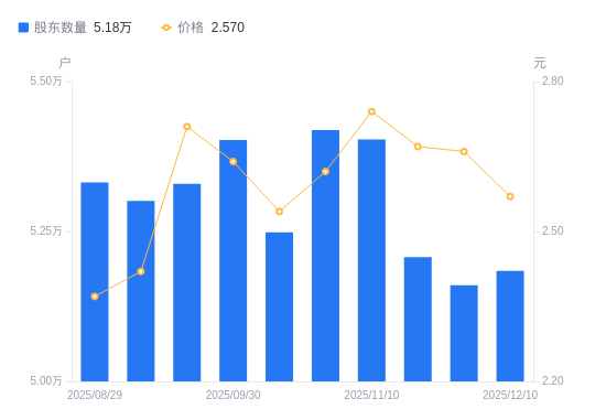 日期A股户数(户)流通A股户均持股数(股)户均持股市值(万元)2025-11-285160431115.558.282025-11-205207430834.718.232025-11-105403629715.138.142025-10-315419329629.057.762025-10-205248730592.097.772025-09-305402529721.187.852025-09-195329430128.858.162025-09-105301030290.267.332025-08-295331630116.427.142025-08-205367529914.997.48