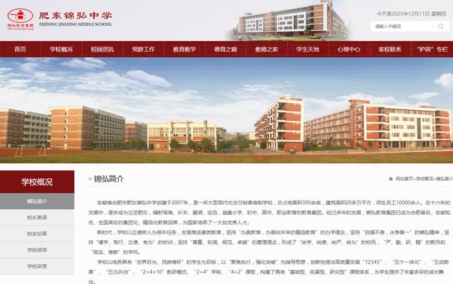 公开信息显示,安徽省合肥市肥东锦弘中学创建于2007年,是一所大型现代化全日制寄宿制学校,总占地面积300余亩,建筑面积20多万平方,师生员工10000余人。