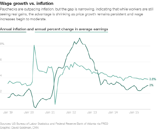 经济学家、商界领袖和政界人士就“如何让美国民众重新感受到生活成本的可负担性”展开了激烈辩论,提出的方案包括提高医疗和住房补贴、降低关税等。但鲍威尔在阐述美联储近期降息决策的理由时,给出了一个简单得多的解决思路:直接给民众涨工资。