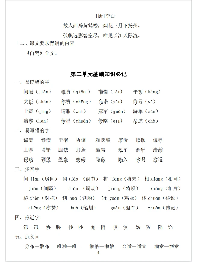 部编版五年级语文上册知识点(上)