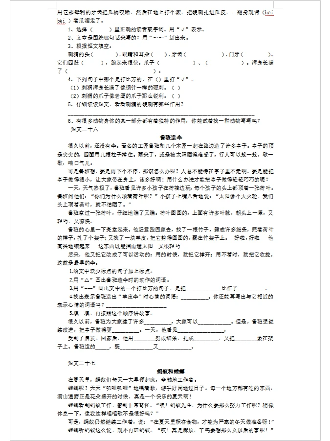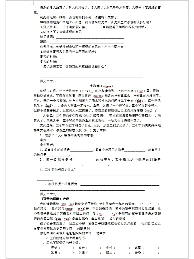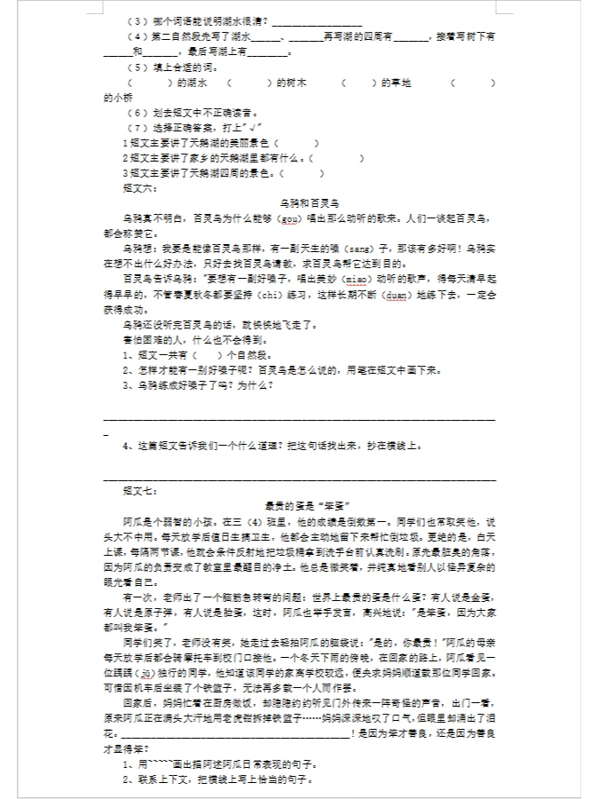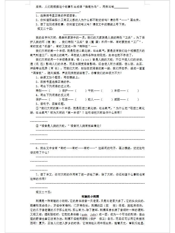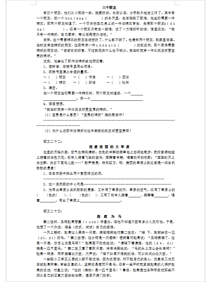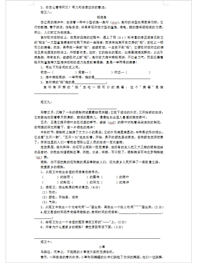 三年级短文阅读30篇