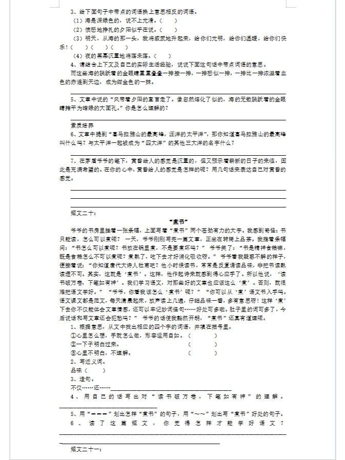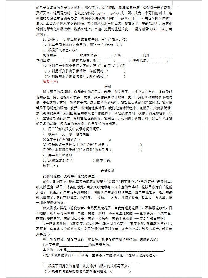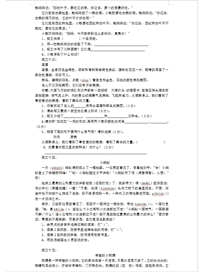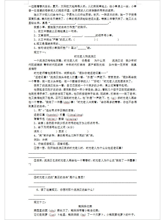 学习 阅读 阅读理解 小学阅读理解 语文阅读理解 三年级语文