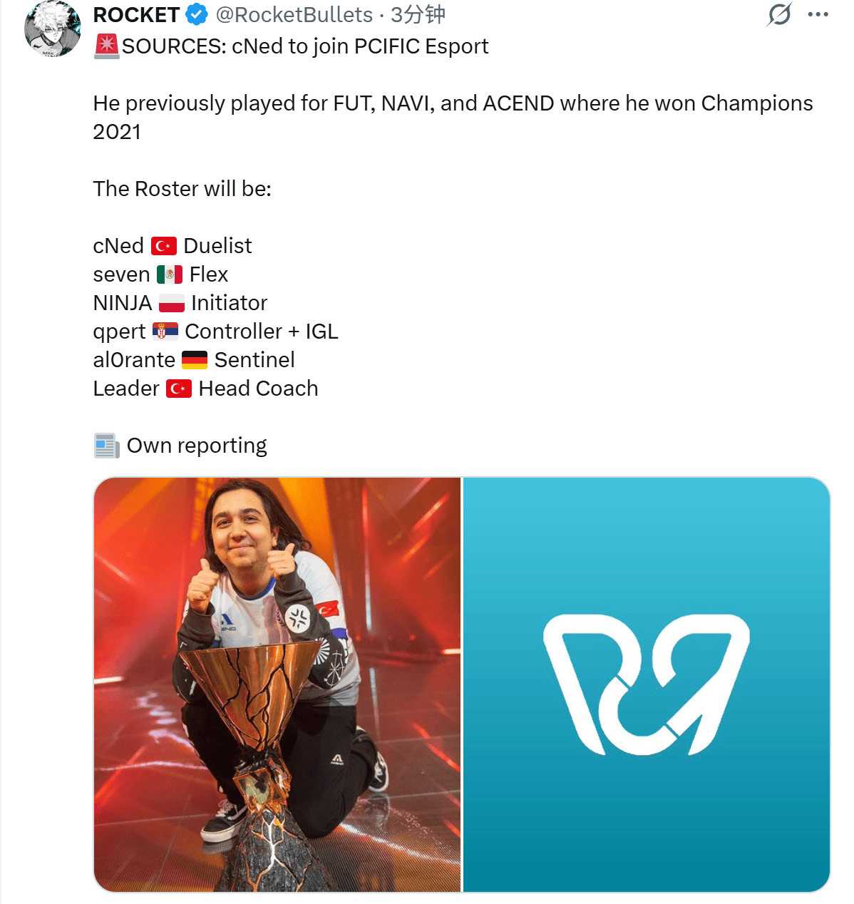 虎扑12月16日讯外媒爆料:2021全球冠军赛冠军cNed将加入2025EMEA晋升赛获胜队伍PCF