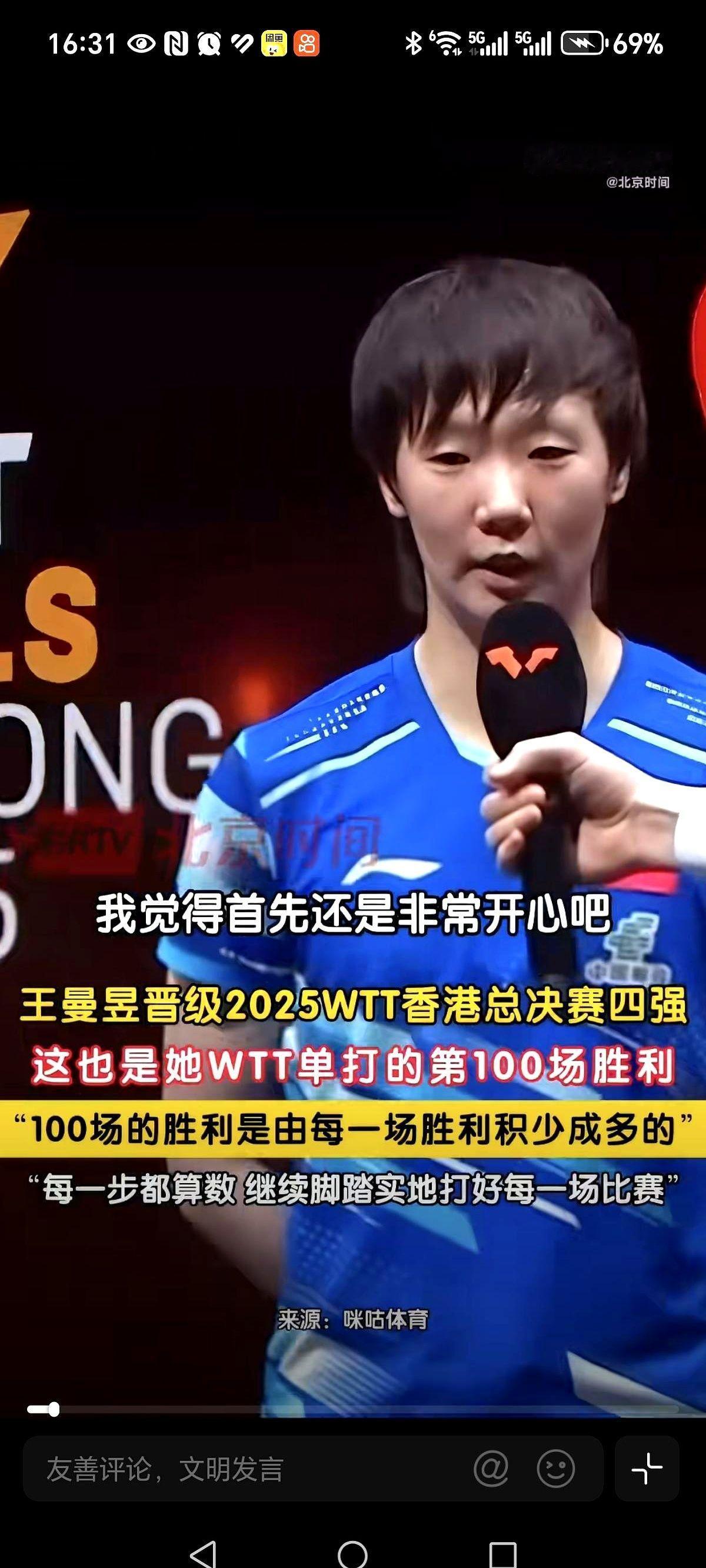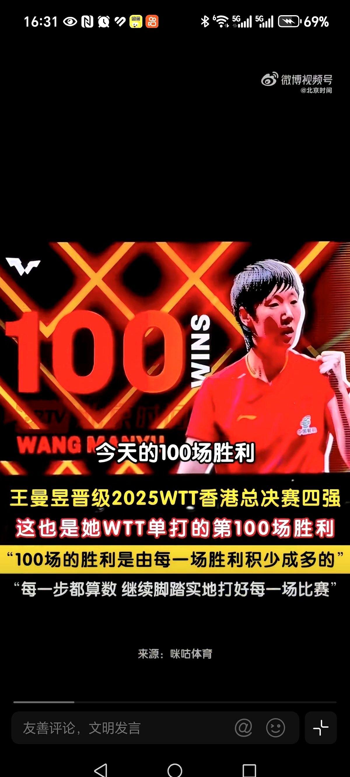 100场单打胜利。 就这么一个数字,她自己说得云淡风轻,一句“每一步都算数”就带过去了。 可懂的人都懂,这哪是100场胜利啊。 这背后,是几百场输掉的比赛,是几千个清晨一个人练球的孤独,是几万次挥拍,汗水把衣服浸透了,又被体温捂干。 竞技体育这玩意儿,最残酷也最迷人。 它从来不跟你讲道理,只看结果。你拿了冠军,你就是王。你没拿,你说你多努力,谁听? 所以,这100场胜利,根本不是100次庆祝,而是至少1000次想要放弃但又咬牙坚持下来的瞬间。 “每一步都算数”。 这话说得真好。算数的,不只是赢的那些步。 那些输到怀疑人生的,被伤病折磨得睡不着的,看着对手登上领奖台、自己却默默背包离场的……每一步,都算数。 它们把一个女孩,淬炼成了一个战士。 所以别光说恭喜了。 看着她,你会觉得,人啊,只要够狠,够纯粹,真就没什么事儿是干不成的。 这比什么鸡汤都有劲儿。