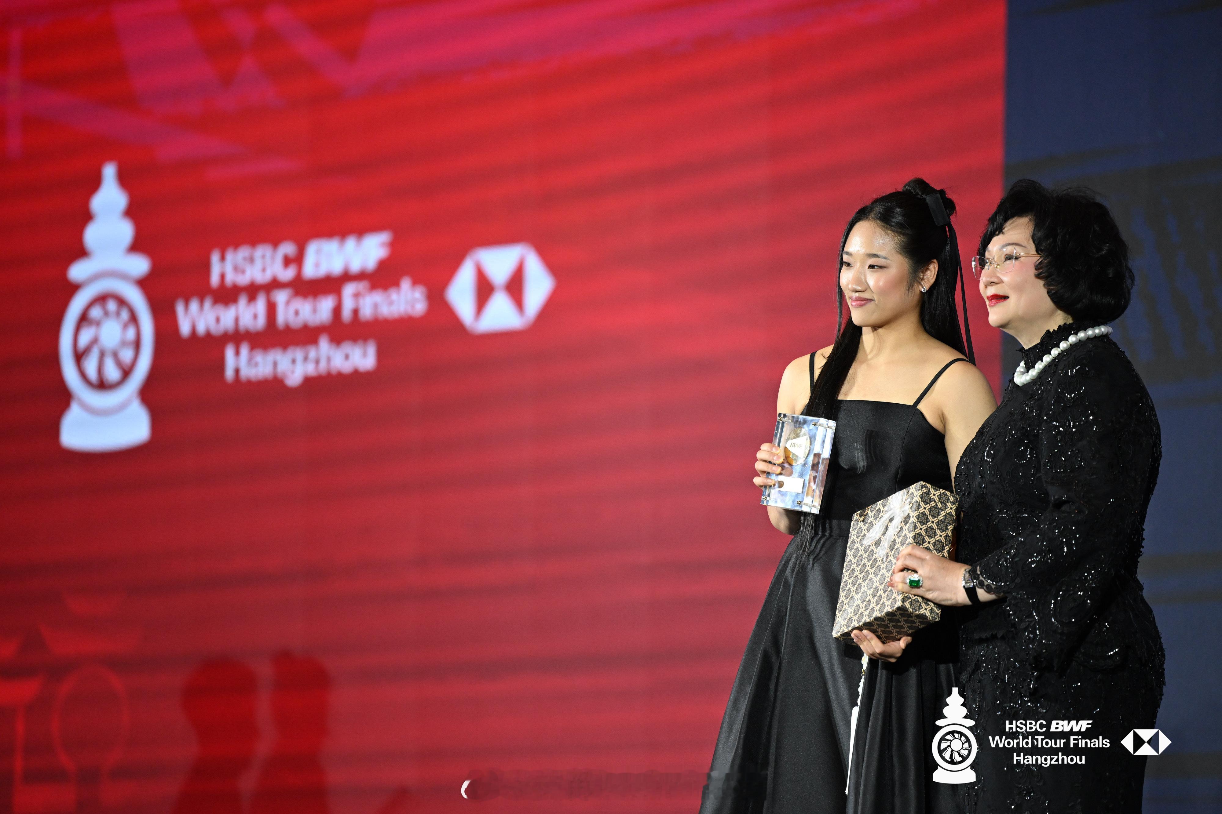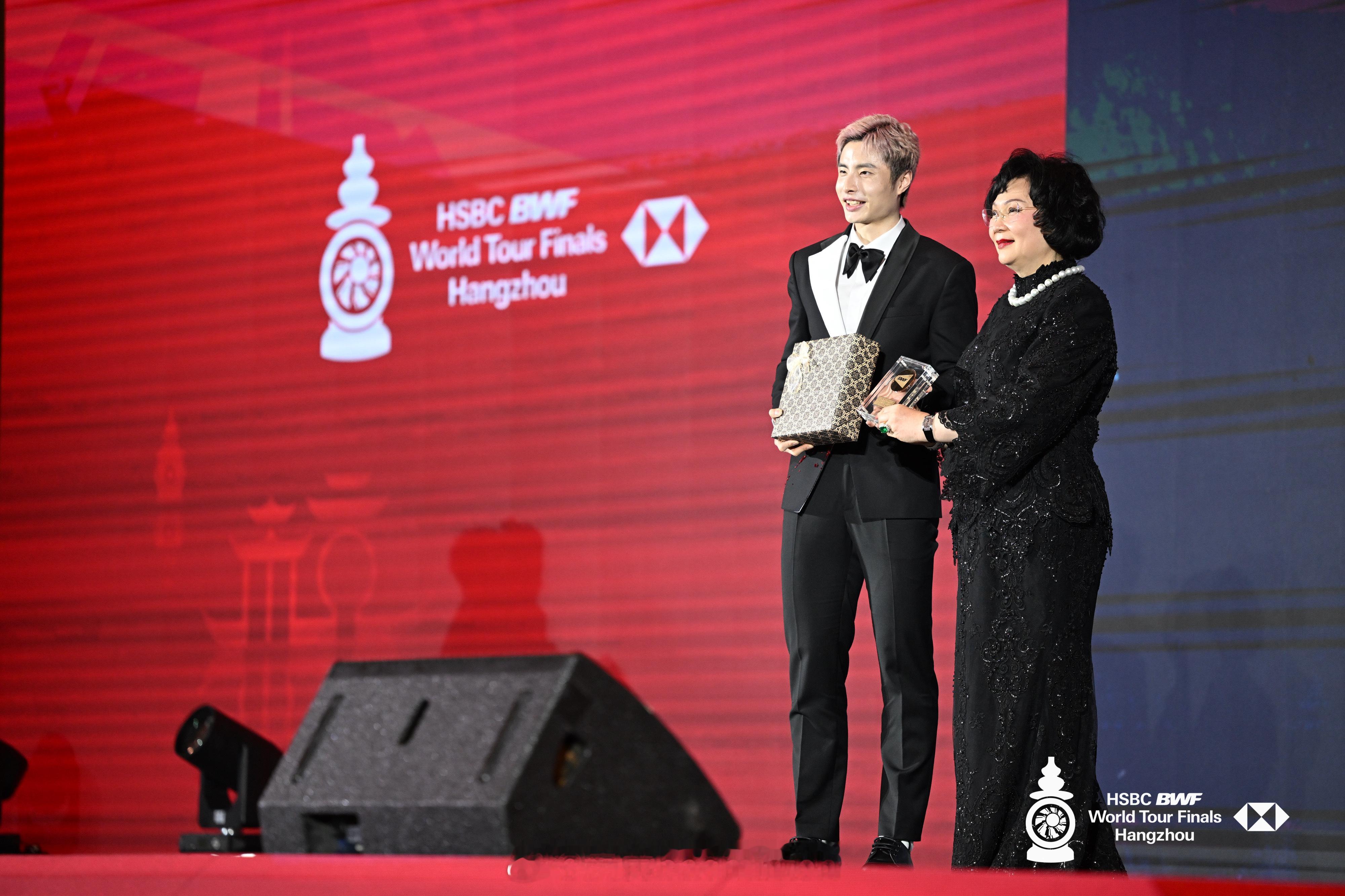 年度最具人气男运动员:🇨🇳石宇奇年度最具人气女运动员:🇰🇷安洗莹图源:官方赛事组委会石宇奇获得最具人气男运动员奖|羽联总决赛颁奖典礼|2025年世界羽联年终总决赛