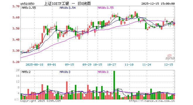 12月15日,上证50ETF工银(510850)跌0.28%,成交额1086.63万元。当日份额增加180.00万份,最新份额为5749.89万份,近20个交易日份额增加120.00万份。最新资产净值计算值为2.04亿元。