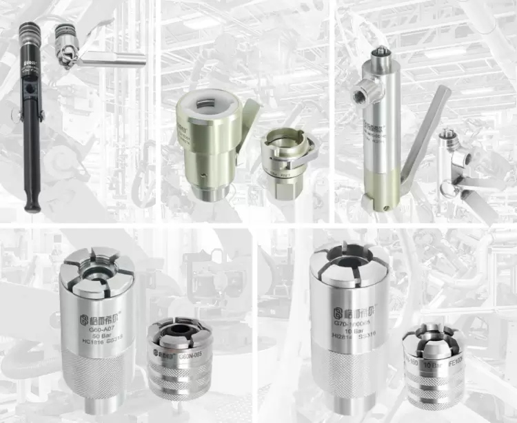 针对这一核心痛点,格雷希尔创新推出了多个系列的迷你型快速密封接头。这些产品在经典设计基础上进行了全面优化,采用极致精简化构造,在确保能够承受高工作压力、实现高频次插拔寿命以及维持可靠密封性能的前提下,显著减少了接头的径向与轴向占用空间。其在微型化的同时,致力于实现流道效率最大化、压力损失最小化,并减少湍流与死区,为工程师应对空间局限提供了高效可靠的解决方案。
