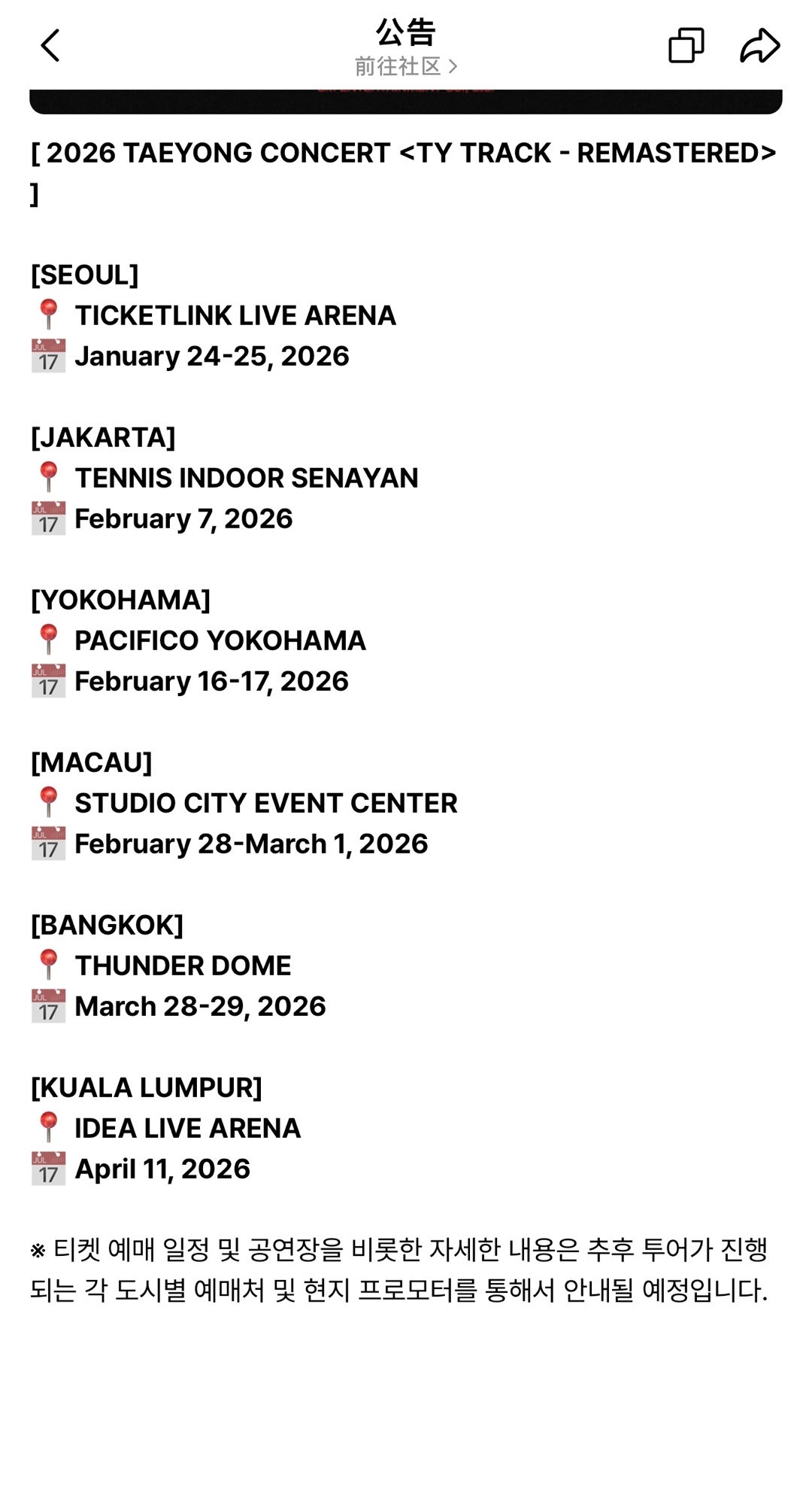 李泰容个人solo巡演海报已出首尔场:2026年1月24日-25日澳门场:2026年2月28日-3月1日李泰容直播