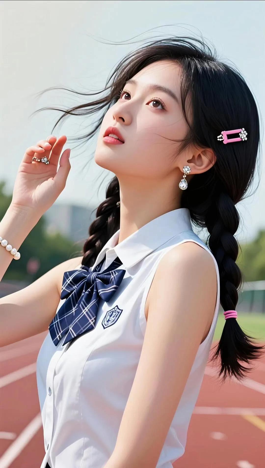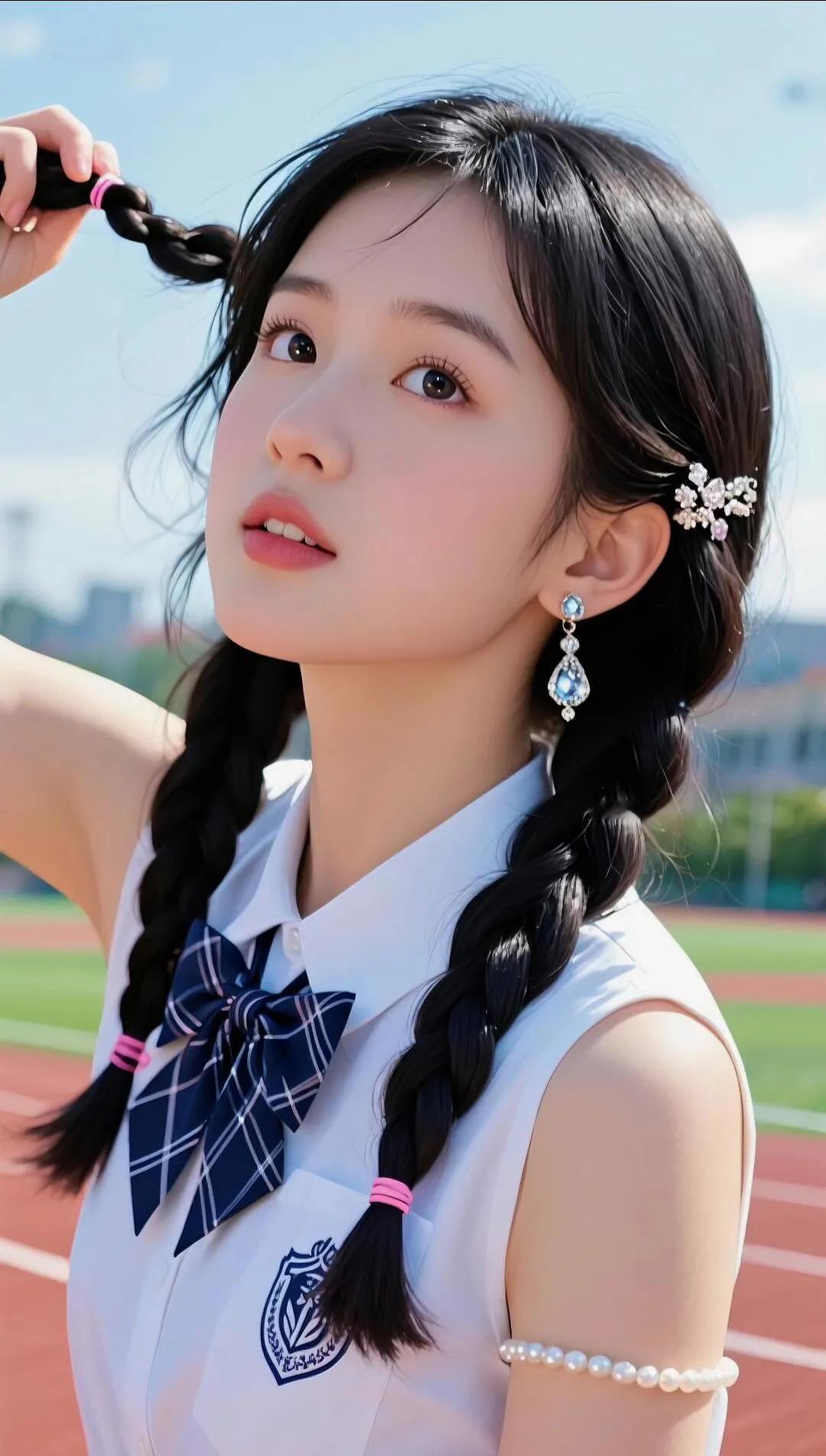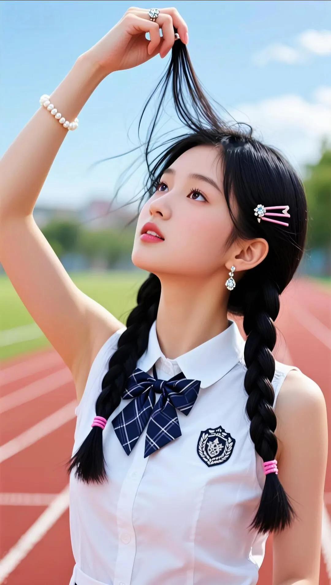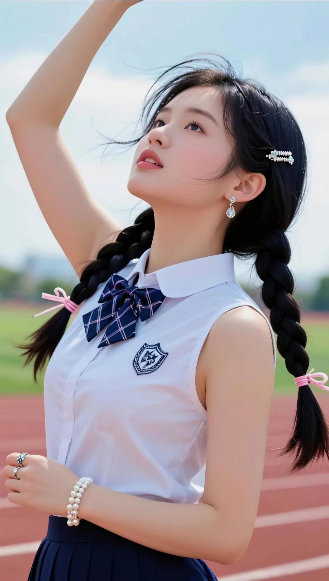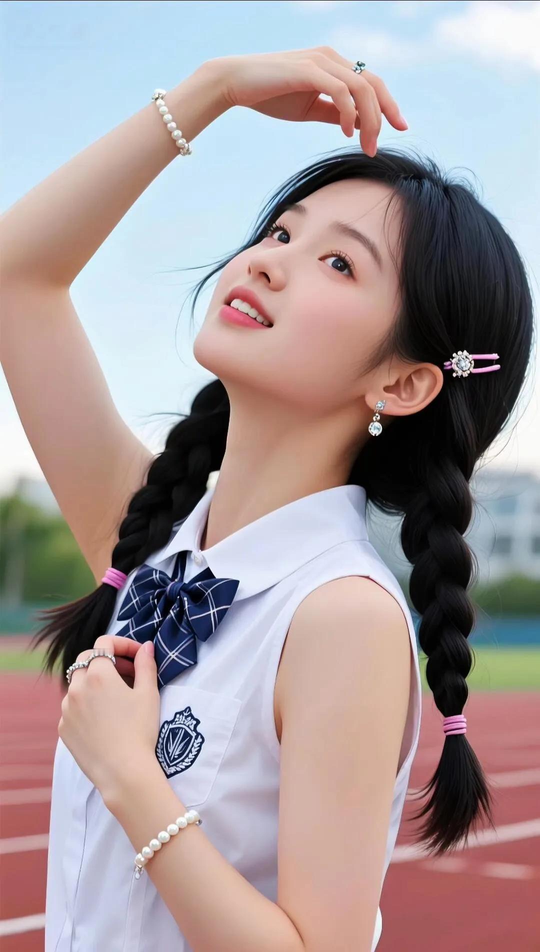 “你笑起来真好看,像操场的晴空🌤️✨ ——捕捉一只清甜双辫的校服少女! 白校