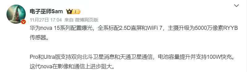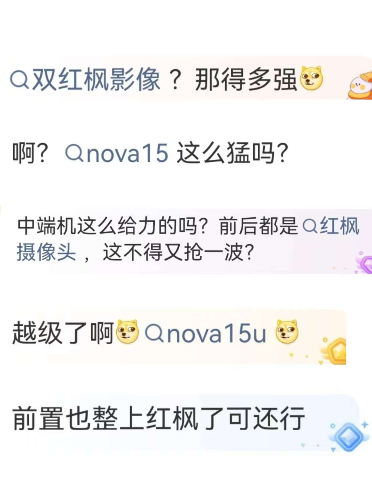 最新爆料华为nova15或将搭载前后置双红枫?那岂不是说nova将是地表最强前摄