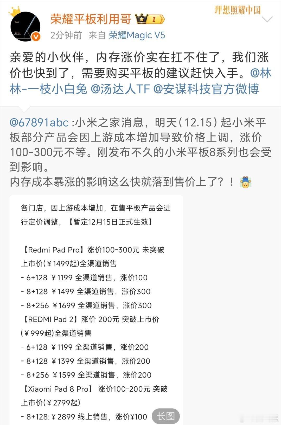 小米多款平板涨价小米平板已经开始涨价了,涨幅在100~200元。现在小米开了头,