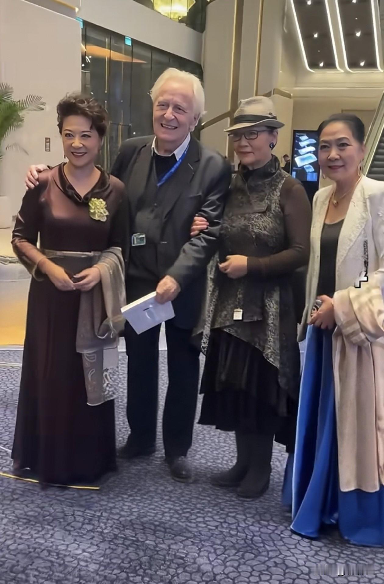 洋老外“艳福不浅”右手搭着王馥荔的肩膀,左手被潘虹挎着”。 此人不是别人,正是沈丹萍的洋老公乌韦。 乌韦是德国人,和沈丹萍于1984年结婚,是名摄影师,婚后随沈丹萍定居中国,婚姻已持续近40年。‌‌ 经常陪同沈丹萍出席各种活动,对沈丹萍的朋友同事也是相当的熟悉。所以才有了大家一起合影的机会。从照片中看乌韦和他们也是相当要好的朋友。 乌韦今年已经79高龄了,虽然头发稀疏,满头白发,皮肤松弛,但他的精神状态非常好。 他身材魁梧、长相帅气,举止间流露出绅士风度,谈吐不凡,给人一种温文尔雅的感觉。‌ 彼此相伴多年,乌韦没有让她失望,依然对她宠爱有加,如今64岁的沈丹萍几乎处于半隐退的状态,住着豪宅,生活无忧。