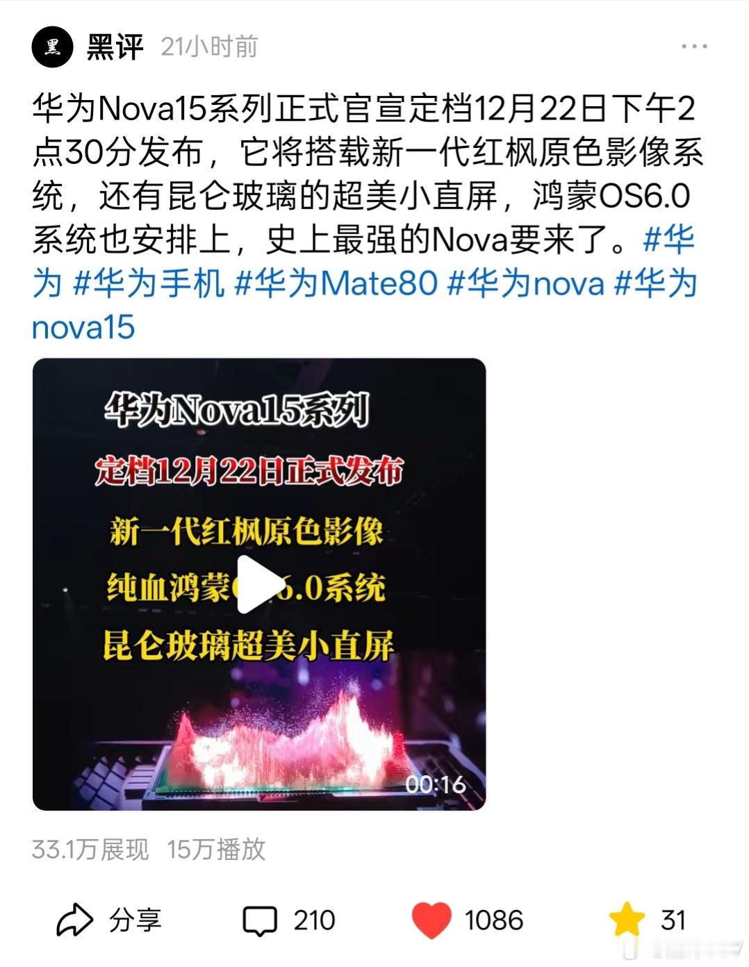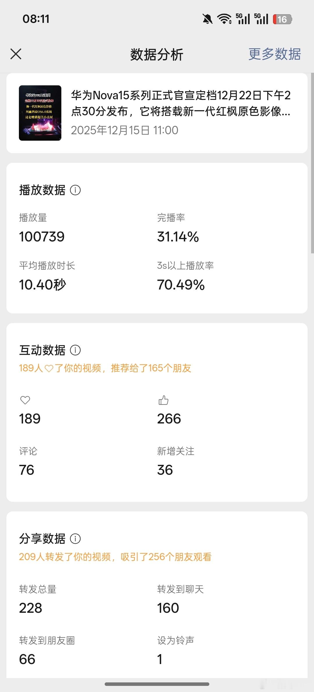 昨天华为nova15系列官宣的二创视频数据狂飙啊,说明对华为nova15系列感兴