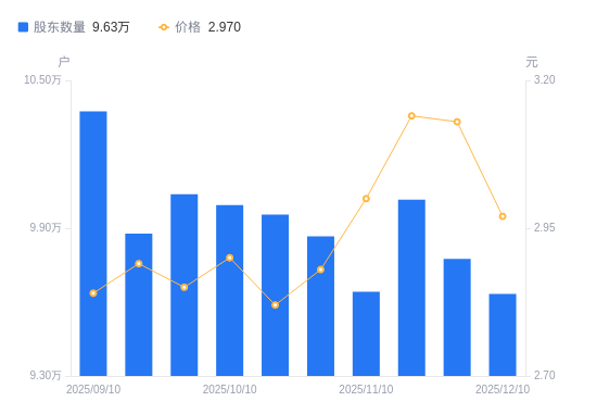 近一年(2024年12月10日至2025年12月10日),神州高铁A股股东户数从15.64万户,减低至9.63万户,降幅38.40%,区间股价下跌11.87%。