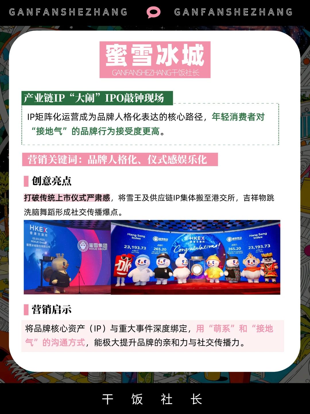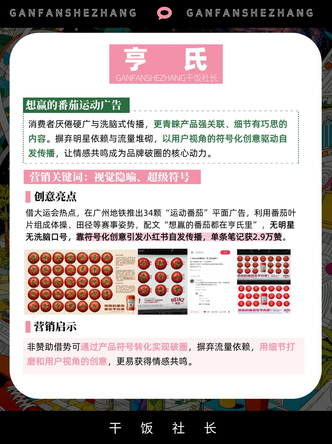 2025年即将结束,作为一名营销人,今年不少出圈爆款案例让人眼前一亮,特意整理出年度十大出圈案例,希望可以给品牌以及各位策宝们一些启示。 这些案例绝非偶然的流量爆发,而是营销逻辑迭代的生动表现,深挖还可以发现,里面藏着品牌破圈增长的核心密码。 从案例中能清晰看到,营销正告别单一流量思维: -品牌愈发注重人格化表达与 “活人感” 沟通,本土化情感叙事与在地文化深度融合; -跨界从生硬联名转向功能延伸与用户行为共生,沉浸式体验与地标化场景成为传播新载体; -去流量化创意、全域生态联动等趋势凸显,让营销从短期曝光走向长期心智占领。 这些案例为行业提供了可落地的实战指引,引领品牌迈向更有温度、深度与广度的增长新路径。