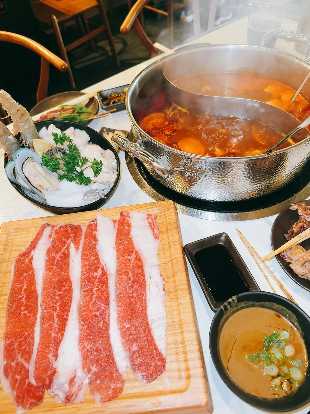 🌟和牛火锅自助(图2)有A5和牛、澳洲和美国和牛,每一种都点了,肉挺新鲜,每一份就两三片,所以可以多点一些