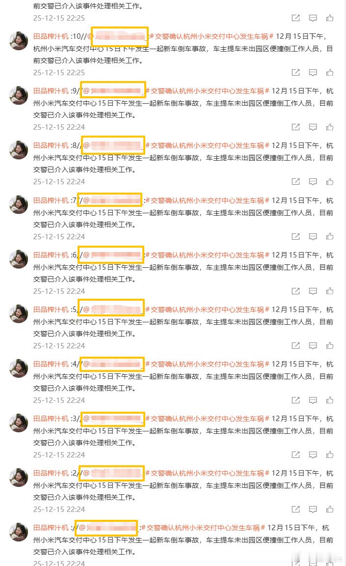 机器人水军将涉企负面信息热转 昨天下午2点出现的一起再普通不过的事故,由于驾驶员的不熟练,导致蹲在角落的工作人员被撞,然后昨天下午6点前后在各个群内疯传,同时网络上也陆续出现了一批博主的散播,紧接着到晚上8点,某财经媒体开始推热搜,时间均卡在网络活跃度最高的时候。我前面就说这都是策划出来的,再加上这类机器人水军将负面转热的情况,让人不得不怀疑其中目的,这明明跟车没任何关系,媒体却要用这样的方式去把事故炒作起来,以达到劣化品牌的目的。而且某媒体所在的地方,境外渗透非常深,国安前两天就强调了境外势力操控社会认知与舆论的问题,我认为小米现在多少有被境外势力舆论操控,因为小米明年年底估计就会宣布出海,到那时候西方的汽车市场必将受到影响。
