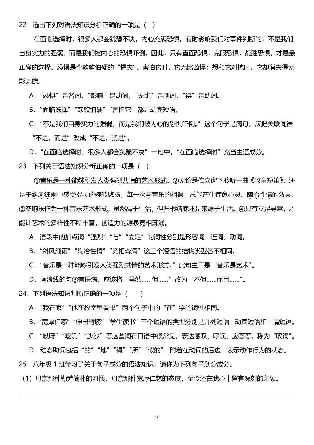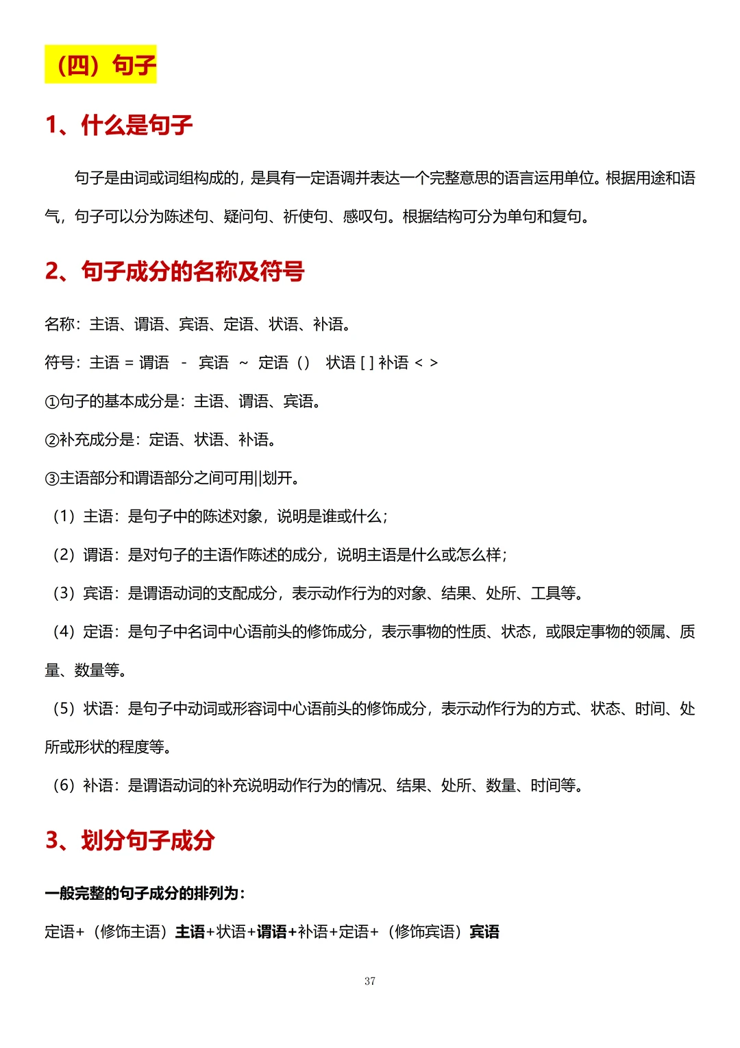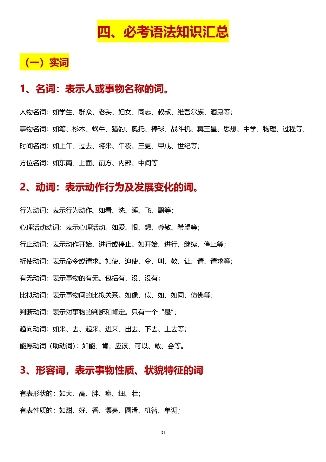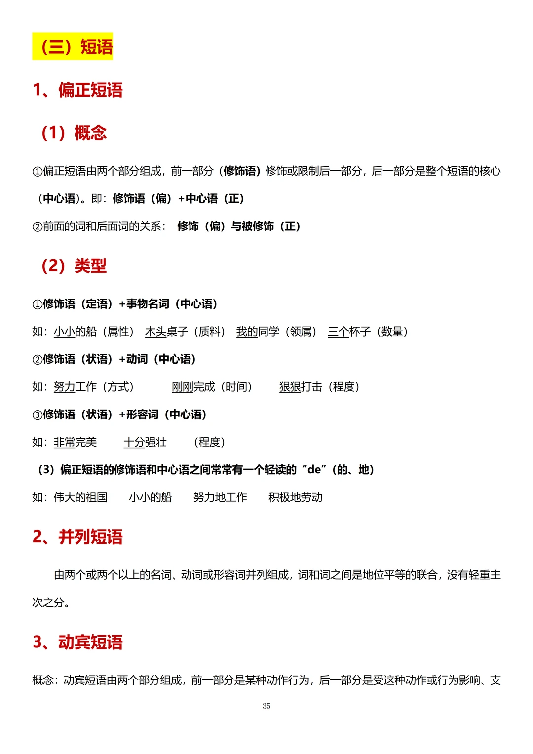 [星R]四、必考语法知识汇总 期末将重点考察6类实词、6类虚词、5类短语、以及句子成分和主干,常常结合一段材料让你判断某个句子中词语的词性,句子的成分,要你写出句子的主干等等。
