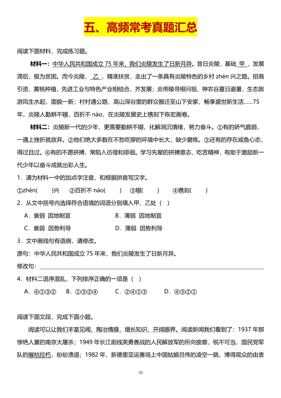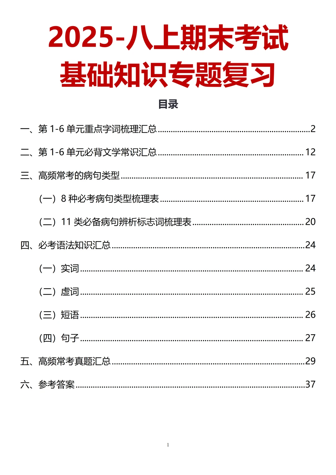 🚀 包含基础套题、文学常识题、语法知识题以及病句修改题,都是近3年各地期末考试的常考真题,分模块刷题,做完对照答案批改,哪里弱补哪里,效率超高!