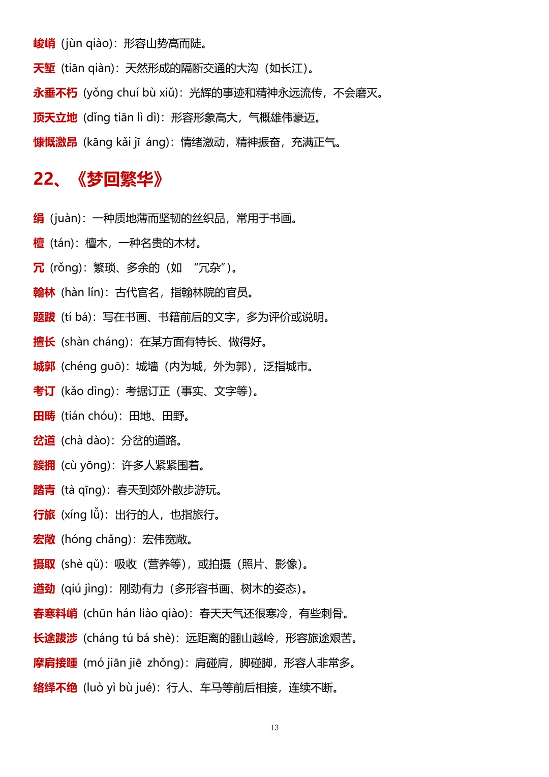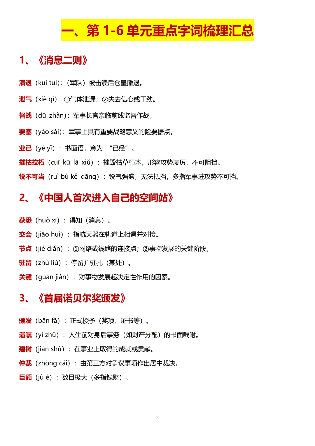 [星R]一、第1-6单元重点字词 八上期末考试将会重点考察1-6单元的重点字词。老师把大家需要记的字词、字音、字形和字词意思都标注出来了。