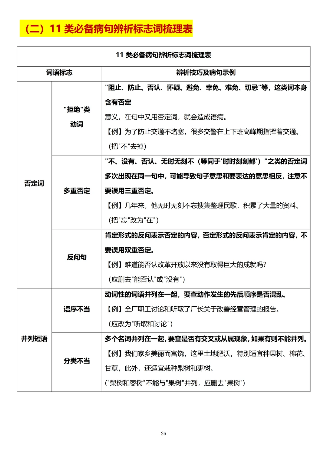 [星R]三、高频常考的病句类型 老师整理了8种常考病句类型梳理表和11类必备病句辨析标志词梳理表,摸清套路,修改病句就不再困难。