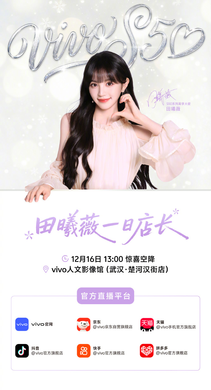 vivo S50系列美学大使田曦薇要空降化身一日店长了vivo人文影像馆(武汉·楚河汉街店)