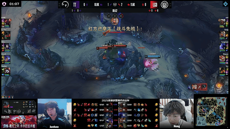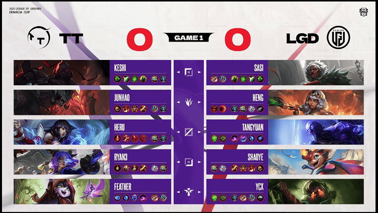 虎扑12月16日讯[GAME1]TT蓝色方、LGD红色方