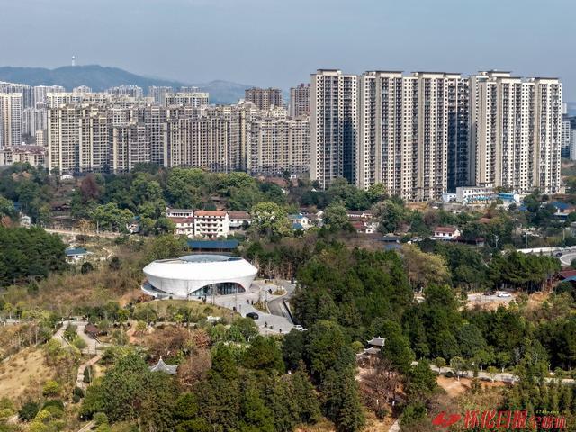 怀化市隆平植物园(又名怀化植物博物园)是集休闲、科普、纪念于一体的民生地标,规划占地800亩,种植200余种珍贵植物与特色苗木,按“一轴六节点十二园”布局,含13个县市区特色植物小园区。核心亮点为袁隆平陈列馆,以稻穗为设计原型,通过铜像、浮雕与互动展陈,展现院士科研历程与“禾下乘凉梦”精神内核。项目配套跨铁路、公路两座天桥,步行2分钟即可从迎丰公园直达。(怀化日报全媒体记者潘雨摄)