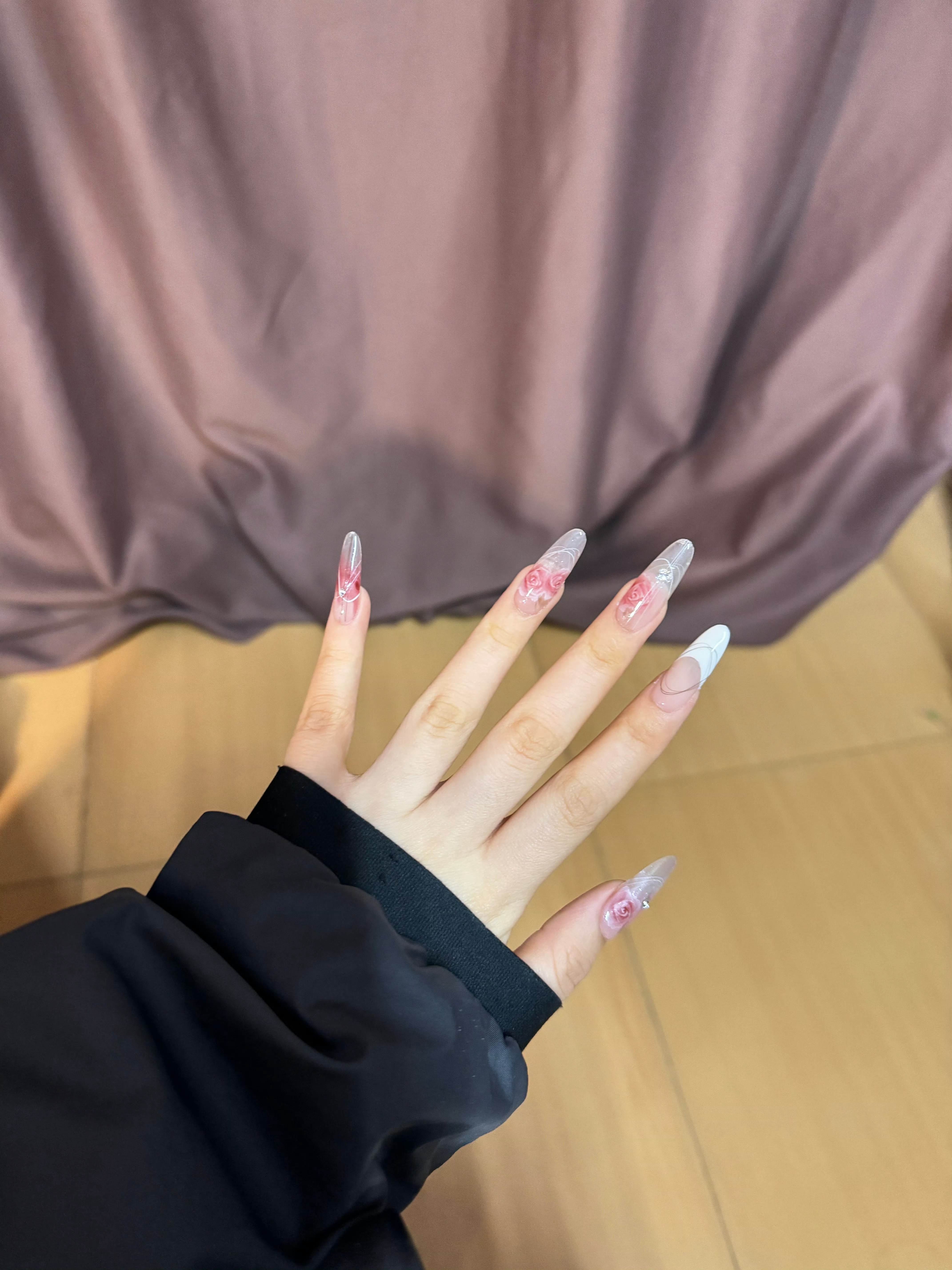 给大家瞅瞅我做了800次的乳白渐变+钻美甲💅✈️飞机上撸的妆十分满意也就拍
