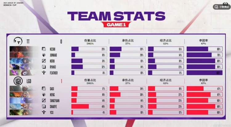TT:上单Keshi、打野Junhao、中单Heru、下路Ryan3、辅助Feather
