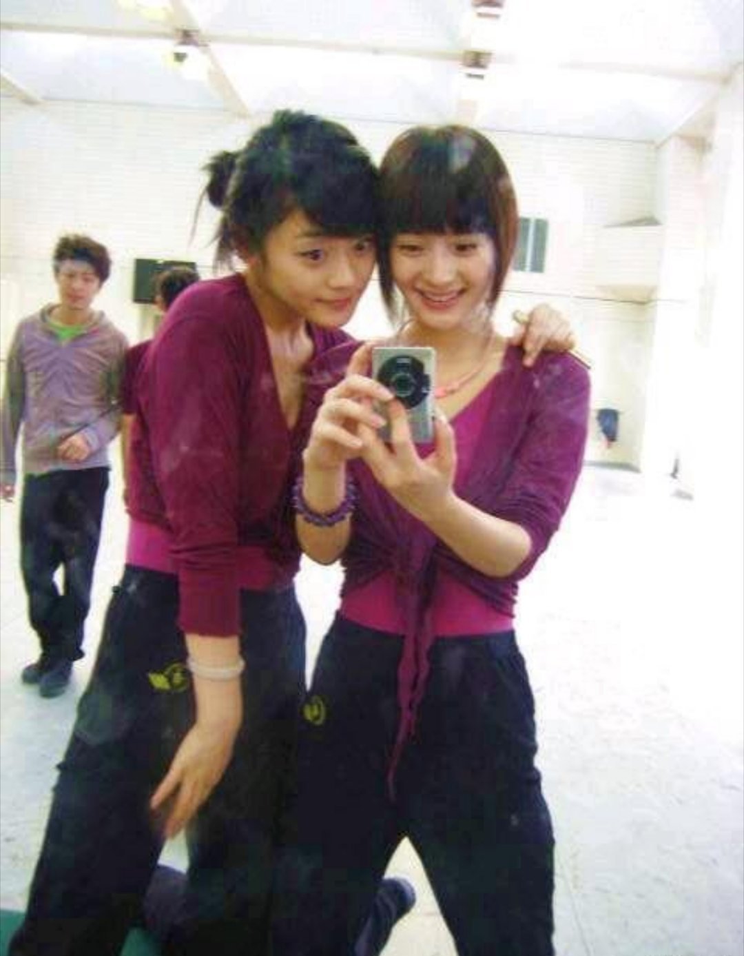 杨幂大学上形体课照片,以前真的很流行铁流海,但杨幂真的绝美