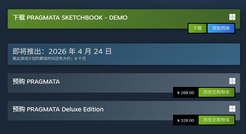 《识质存在》(Pragmata)官方宣布,已有超100万名玩家把本作加入到了愿望单中。游戏的免费试玩Demo已在Steam上推出,2026年4月24日正式发售。