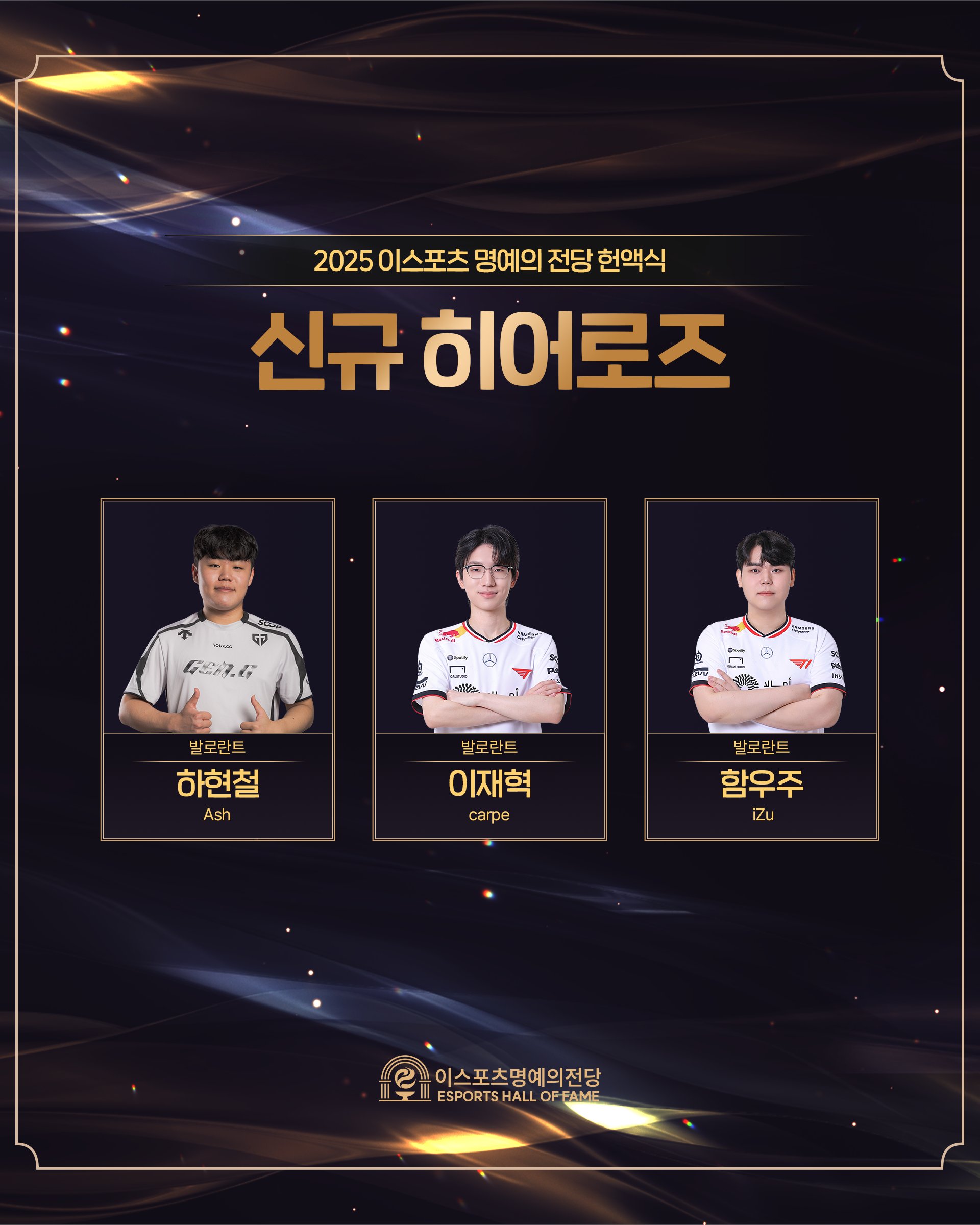 Ash/carpe/iZu/free1ng/HYUNMIN和Sylvan入选25KeSPA英雄奖