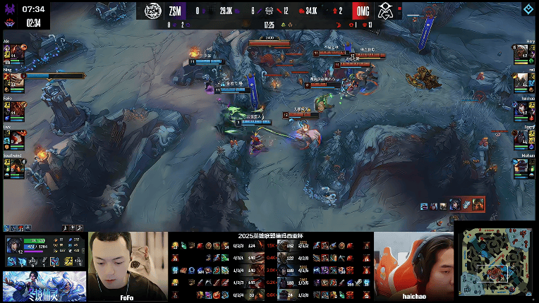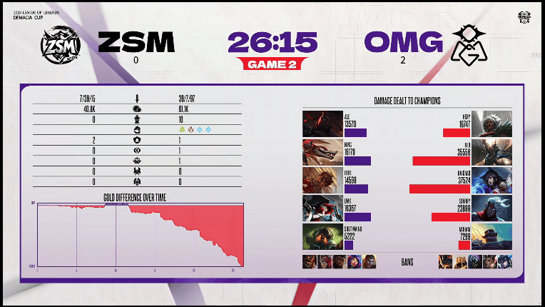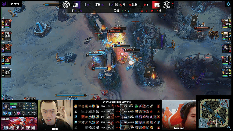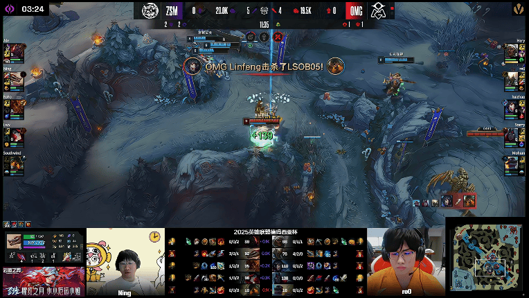 24分钟,OMG打出0换5后攻破ZSM两路高地