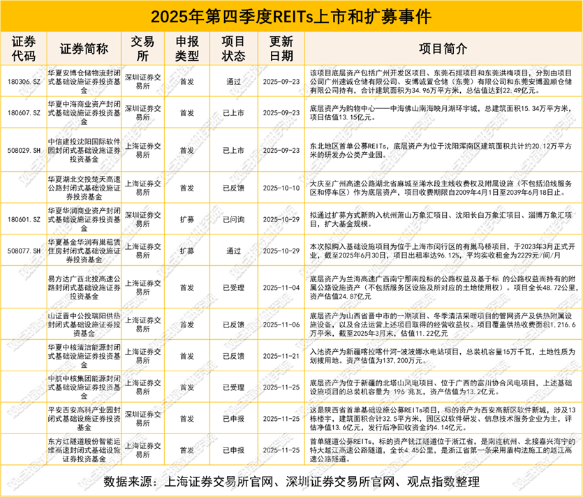 商业地产方面,“华夏中海商业REIT”以佛山南海映月湖环宇城为底层资产(15.34万平方米,估值13.15亿元),“华夏华润商业REIT”则通过扩募拟购入杭州萧山、沈阳长白、淄博三地万象汇项目,显示商业地产作为消费载体的长期收益能力正被REITs市场深度挖掘。