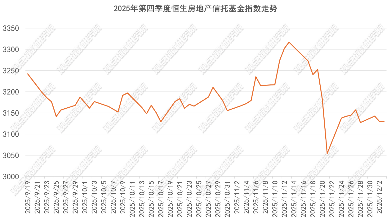 恒生房地产信托基金指数在期内呈现震荡回落的态势,整体围绕3050-3300点区间波动,四季度末小幅收跌。