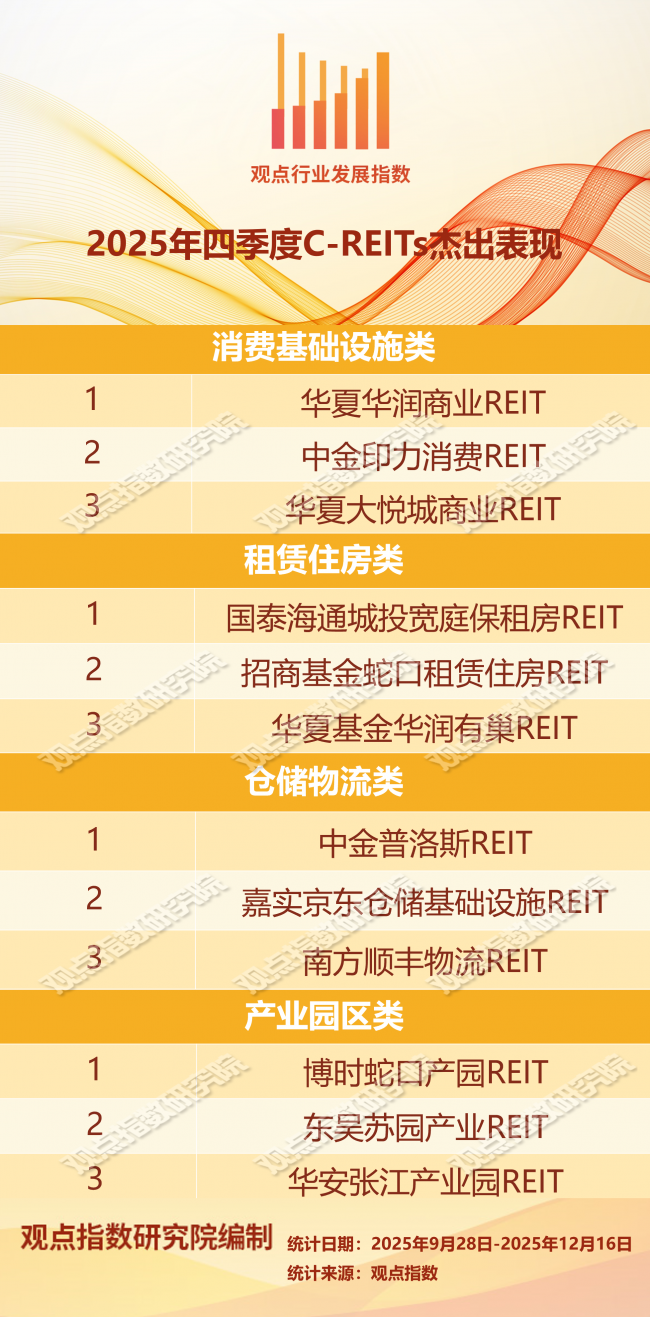 观点指数2025年四季度,C-REITs市场规模持续扩张,截至报告期末,全市场上市REITs达77只,总市值2188.07亿元,较2024年末增长39.30%。