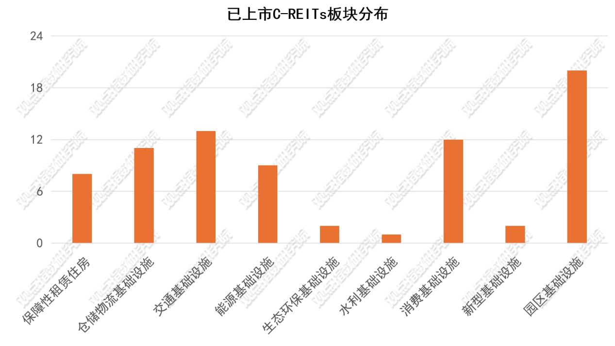 整体来看,园区基础设施REITs为20只,占比25%。消费基础设施REITs为12只,占比15%,仓储物流类10只,占比14%。保障性租赁住房8只,约占10%,