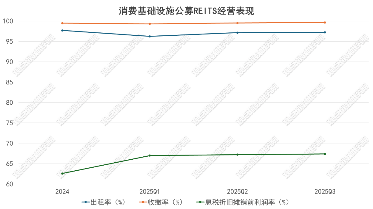 收缴率表现尤为亮眼,Q3达99.48%,较Q2的94.89%大幅提升4.59个百分点,接近2023年的99.51%高位,显示运营方在租金回收管理上成效显著,租户支付意愿或能力增强。