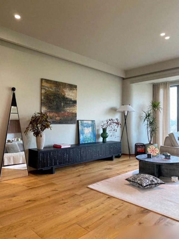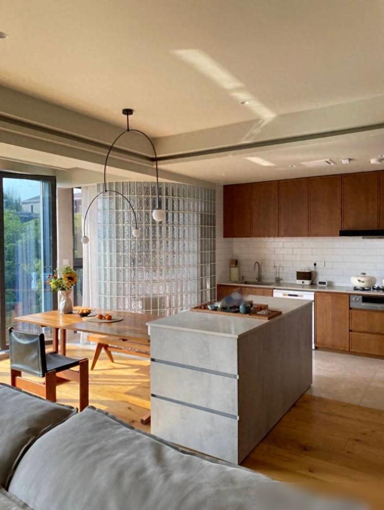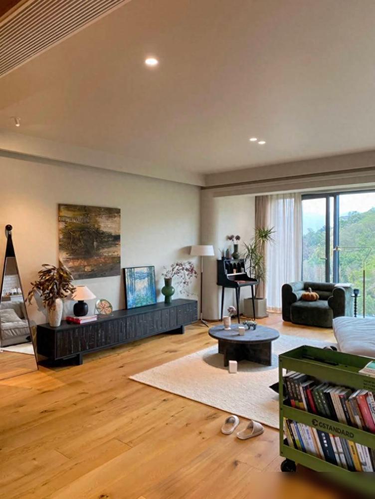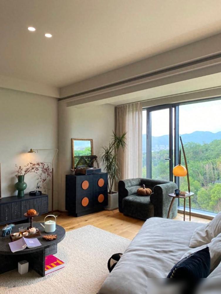 这是我见过最松弛,最会过日子的家了。重庆夫妻家中的高级场面:坚持不买电视、茶几,入住反而实用顺心 🌿看完就一个感觉,这家是真会住啊。不搞那些华而不实的东西,怎么舒服怎么来。撤离大城市,在山边安家,这眼光没得说。 🛋️客厅愣是没要电视和茶几。现在年轻人好像都这么干,用投影仪代替电视机。一整面墙都是幕布,跟私人小影院似的,氛围感直接拉满。少了茶几,空间一下就敞亮了,随便瘫坐、做运动都行。 🎨风格这事,还真不好定义。硬装是现代风,但家具又带点新中式的调调。混搭得挺自然,一点都不乱。关键是用色很克制,墙面浅,地板深,家具颜色再深一点,看着特别稳。 🌳阳台封起来做了落地窗,这招太聪明了。客厅直接就能看到外面的山景绿树,相当于把大自然请进家里了。放个单人沙发在窗边,喝茶看书,想想都惬意。 🍽️厨房餐厅客厅全打通了,是个大横厅。L型厨房加了个岛台,动线设计得很巧妙,几个人一起做饭也不挤。岛台下面全是收纳,台面就能保持干干净净。 📚书房也花了心思,地面抬高了一点,做成地台。可以直接坐地上,特别随意。书柜是矮柜,东西不多,留白足够,待在里面心能静下来。 🚪卧室最亮眼的是床尾一整面墙的衣柜。一门到顶,简洁利落,收纳能力超强。床头柜那块儿,衣柜底下特意留了个空,能放手机眼镜,比传统床头柜好用。 🛁卫生间是暖色调,做了干湿分离。洗漱台只装了一个盆,把台面空间留得大大的,放东西方便。玻璃隔断不影响采光,显得清爽。 🖼️软装全靠挂画和绿植撑场面。绿植摆在角落,家里瞬间就有了生气。挂画选了大地的色系,和家具颜色呼应,偶尔跳色一下,很提气。 💡说到底,这家的好住,不在于多豪华,而在于懂取舍。知道自己要什么,不要什么。比如用投影仪代替电视,打通空间,多做收纳。一切都是为了生活服务,住着顺心才是硬道理。