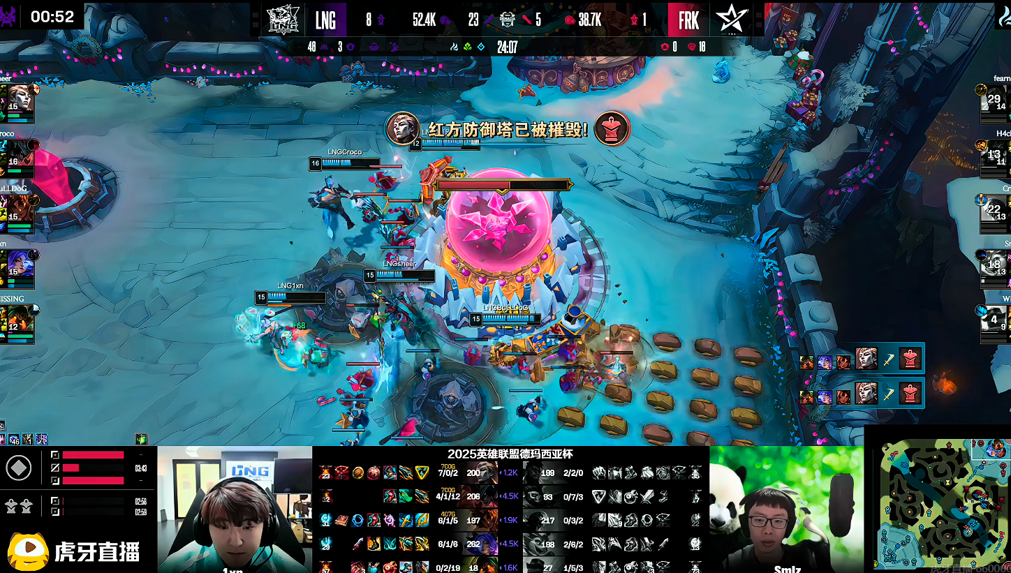 比赛第24分钟,LNG打出0换5,一波结束比赛