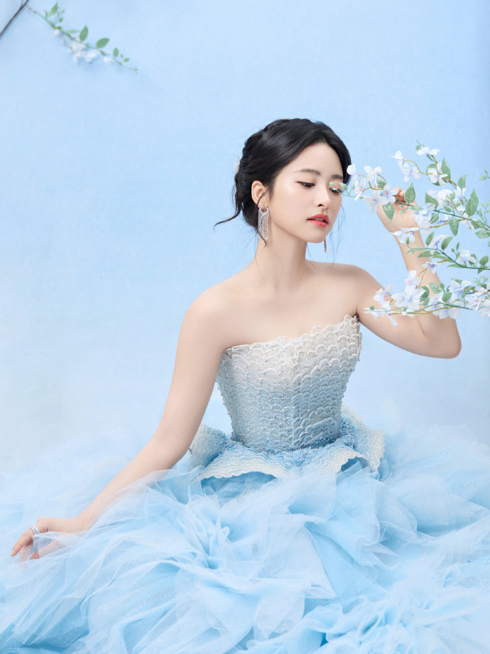 沈月蓝色婚纱 沈月国剧盛典抹胸薄纱蓝裙造型 沈月蓝色婚纱,沈月国剧盛典抹胸薄纱蓝