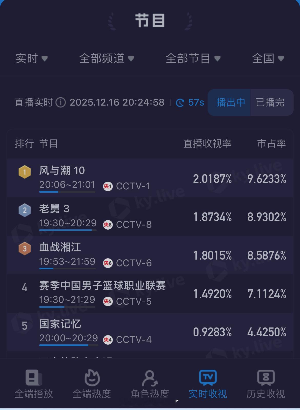 《风与潮》开播之后收视率直线上升,15分钟直接破2!