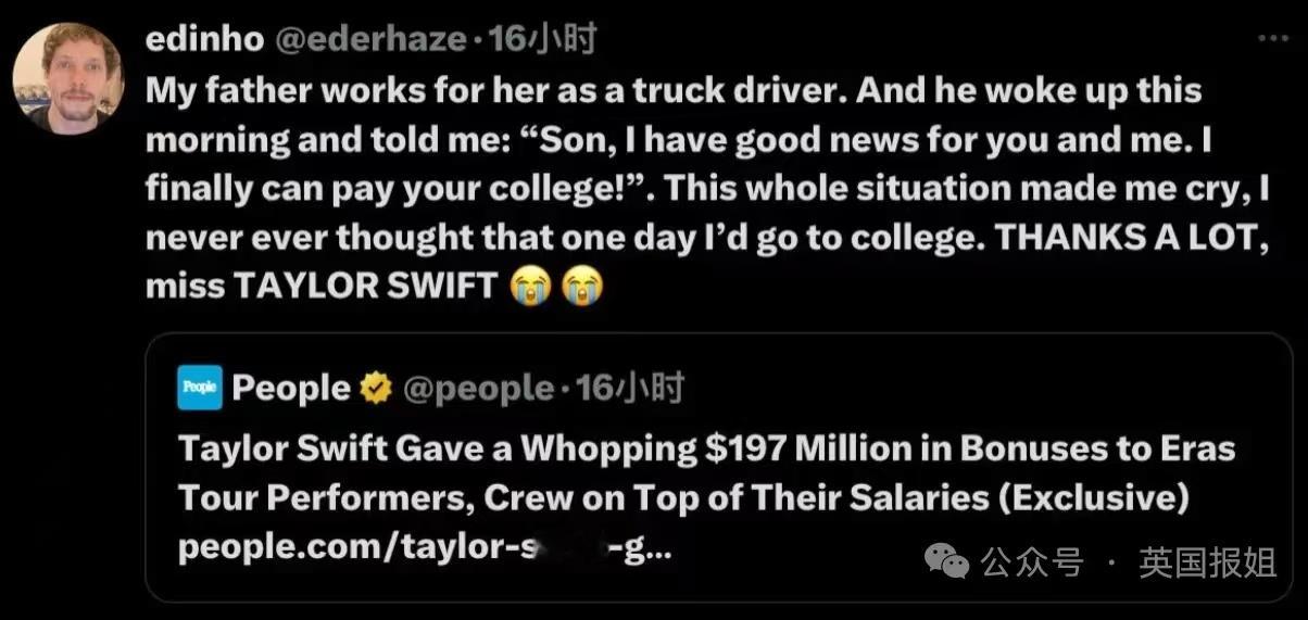 秦岭笑谈 “神仙老板”全球第一女霸总霉霉(Talyor Swift)给全体员工发